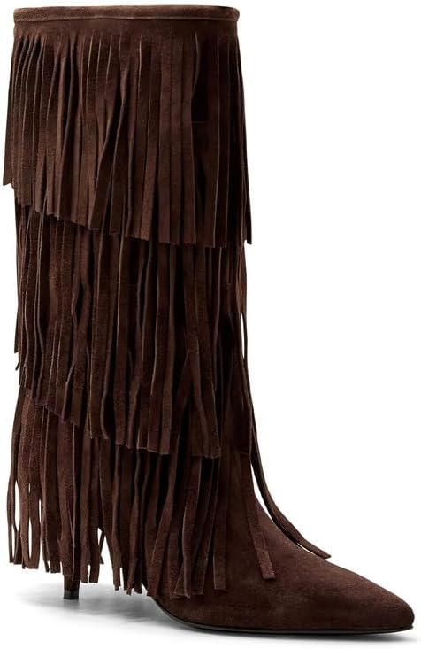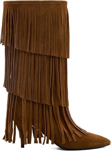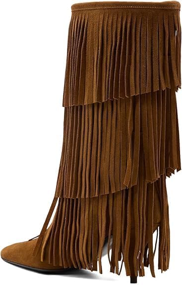 • POINTED HEEL BOOTS : The 6.5cm/2.55" heel of fringe knee high boots elevates your silhouette while maintaining stability, blending feminine edge with practical wearability. Walk with poise, whether you're on city streets or dancing the night away!
