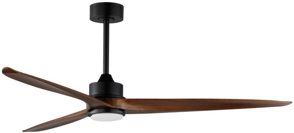 Solid Wood blades curve as they rotate around a center housing with LED light kit included. An additional cover plate is included if the light kit is not used. Select from stylish finish combinations including Natural Aged Brass with White Wood, Satin Nickel with Greywood, Black with Walnut wood, or Charcoal Bronze with Distressed Wood.