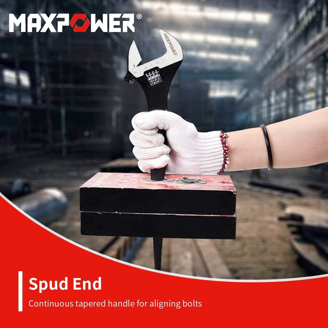 MAXPOWER 3Pcs Adjustable Spud Wrenches Set* 16-inch Spud wrench, max jaw opening 1-1/2 in. (38mm)* 12-inch Spud wrench, max jaw opening 1-1/4in. (32mm)* 10-inch Spud wrench, max jaw opening 1 in. (25mm)* Dual scale SAE + Metric for clear reading* Spud End Continuous-tapered handle for alignment of bolt and rivet holesMAXPOWER Tongue and Groove Pliers* Sizes and Opening Capatities: 1-3/16 inch (30mm) for 7-inch model, 1-1/2 inch (38mm) for 10-inch model, 3-3/4 inch (95mm) for 16-inch model* Fast Adjustment Directly on the Work Piece, Just Position the Upper Jaw to the Work Piece , Push Button and Move Close the Lower Jaw