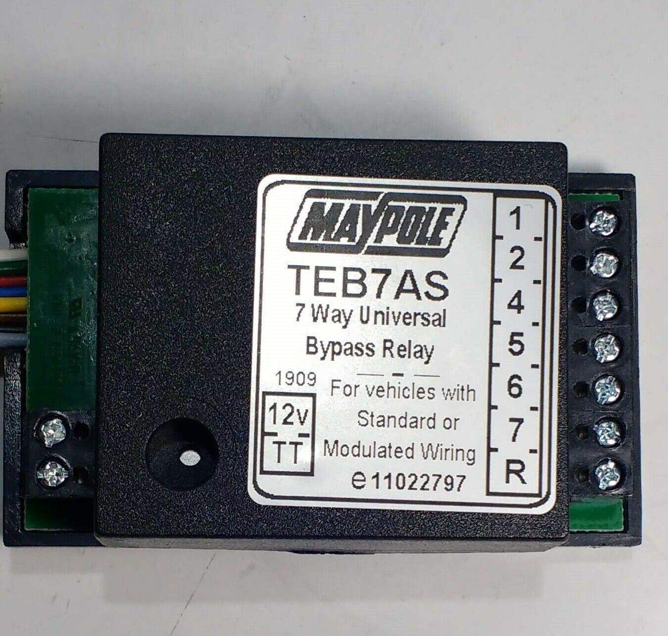 Maypole 12V 7 way bypass relay with audible buzzer trailer and caravan towing electrics. A 7 way bypass relay is connected directly to the vehicles lighting circuits to control the lights on a trailer and caravan. The relays do not put any extra load onto the vehicles lighting system. The relays also feature a built in audible buzzer that monitors the trailer and caravan indicators. All bypass relays can be powered using either the battery or the fuse box. This towing bypass relay is compatible with vehicles that use multiplexed (shared-signal) wiring systems for position/brake and position/fog lights—as long as these signals are still present as physical wires at the rear light clusters. For other lighting functions, such as indicators, the relay requires separate signal wires running to each rear light cluster. It will not work with vehicles that use fully digital or network-based systems (such as CANBUS control) with no direct rear signal wiring. If you're unsure about your vehicle's wiring configuration, please consult a qualified auto electrician before purchase.