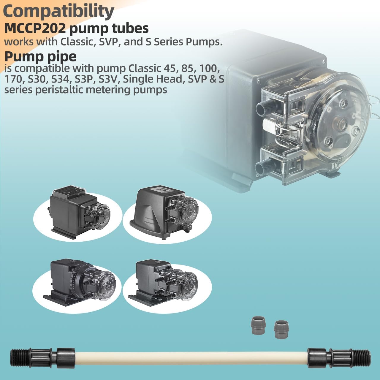 • 【Compatibility】MCCP202 replacement pump tubes works with Classic, SVP, and S Series Pumps. The pump feed tube fits for Classic, 45, 85, 100, 170 , single head, SVP, BDF , S, and M128 Series pumps.