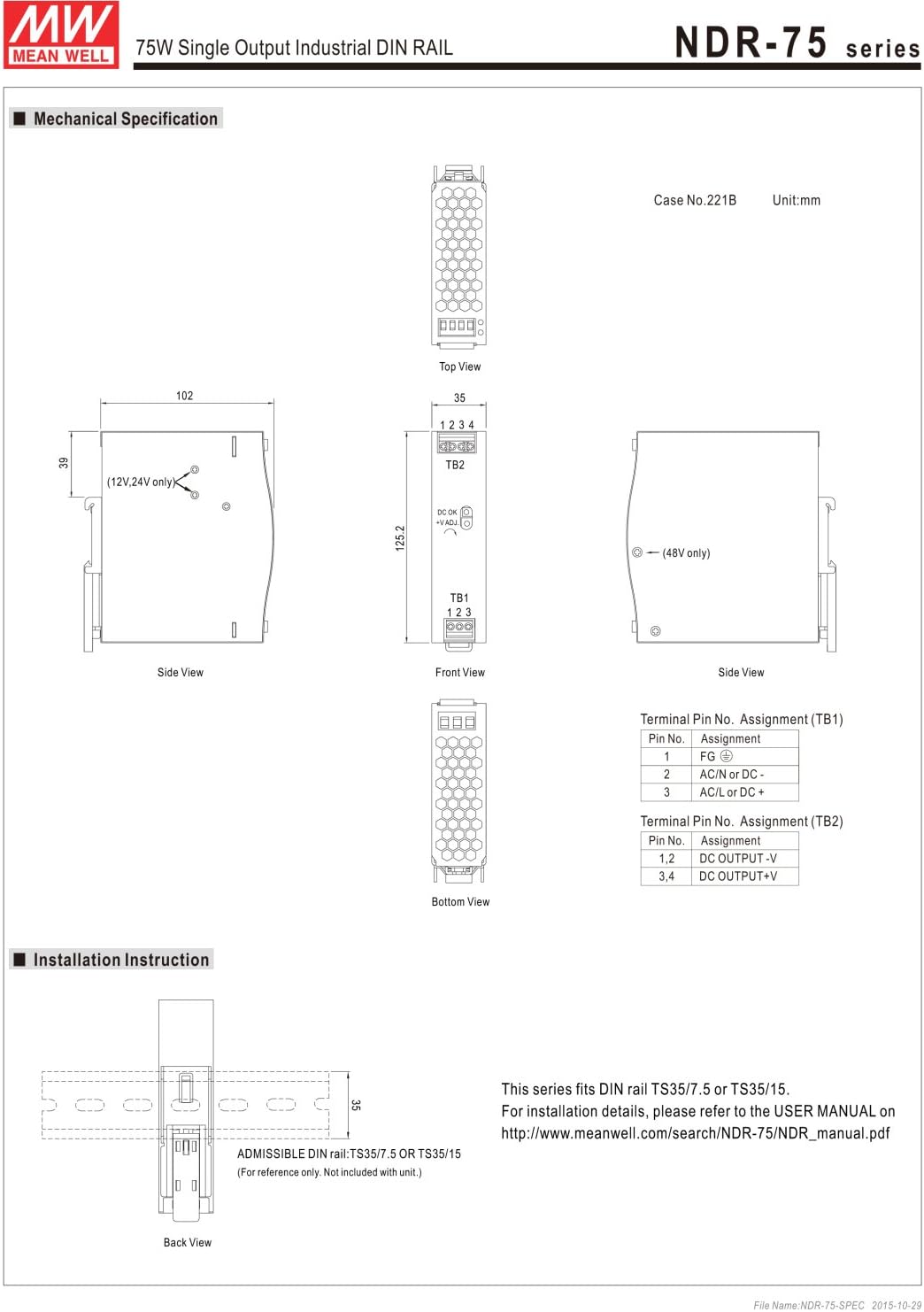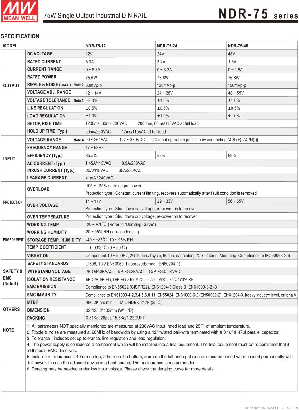 | Model Number | NDR-75-12 |