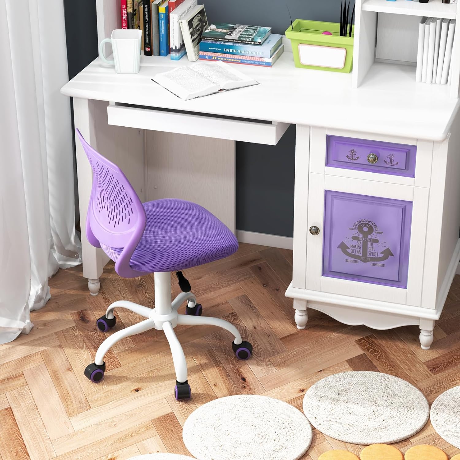 MEDIMALL Kids Desk Chair, Purple Ergonomic Kids Office Chair Ages8-12 w/Lumbar Support, Low-Back Teen Desk Chair for Girls Boys, Small Cute Kids Computer Chair for Bedroom/Study/Vanity Desk