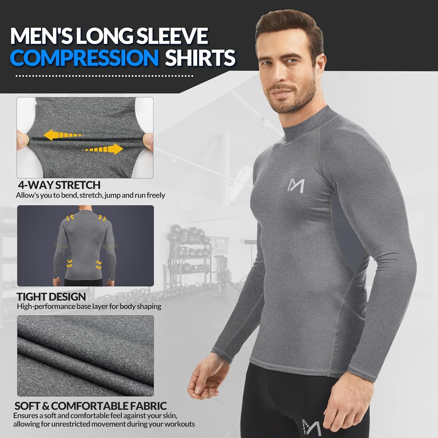 Men's Compression Shirt, Cool Dry Long Sleeve Underwear Top for Men, Sport Fitness Base Layer