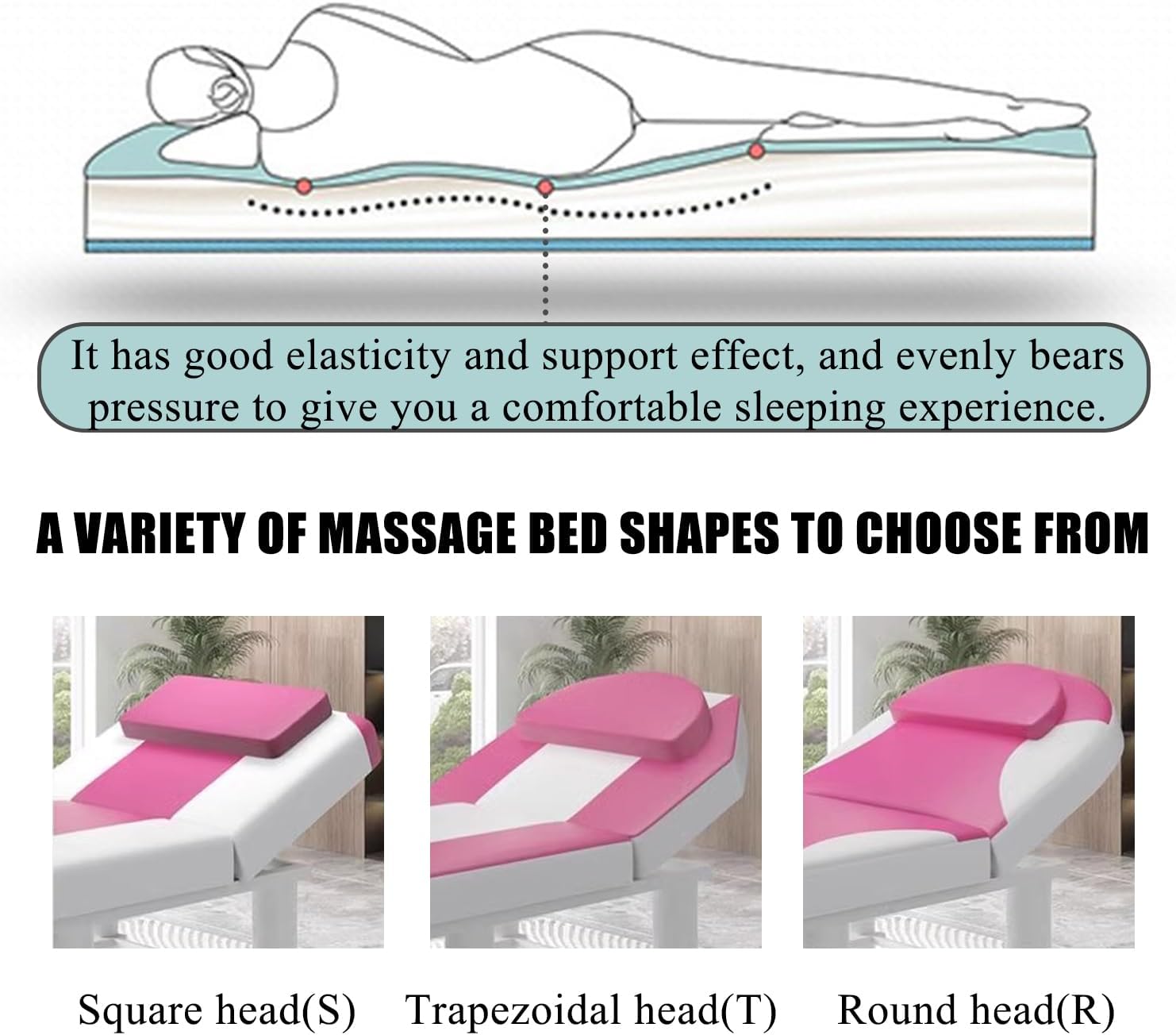 Crystal velvet memory foam massage table mattressEssential items for beauty salon salon storeThe ultimate comfortable mattressLet your customers enjoy comfortable and healthy beauty treatmentsFabric: crystal velvetFilling: soy fiber+memory foam+anti-collapse cottonThickness: 7cm(2.75in)With or without facial breathing holes: with holeMassage mattress shape: (S)Square Head, (R)Round Head, (T)Trapezoidal HeadSeason of use: all seasonsUse places: beauty salon, health center, chiropractic, spa sauna, physiotherapy massage parlor, etcColor: beige,blue,yellow,purple,pink,brown,gray,redSize:180*60cm(71*24in)180*70cm(71*28in)185*70cm(73*28in)190*70cm(75*28in)190*75cm(75*29.5in)190*80cm(75*31in)Packaging Details: 1 x Thicken Memory Foam Mattress Topper for Massage Table (Excluding Display Bed)Kind Tips:1.This model is a soft mattress, and there will be an error of 1~3cm after being compressed and packed, which will not affect your later use (please be careful if you mind)2.The product photos are all taken in kind, which may be due to the light and different monitors when the pictures were taken. The problem of color difference caused by the display deviation and personal color understanding is unavoidable (such problems are not quality problems )3.Not removable and washable, needs to be spread with sheets! ! !