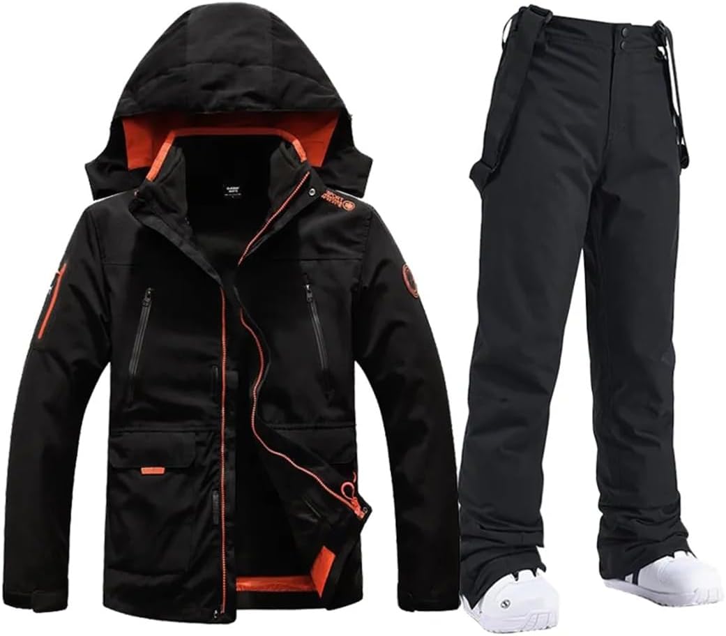 ❁❁Winter Windproof Waterproof Breathable Ski Suit for Men and Women♥♥Product DescriptionProduct name: Ski suit suit , Sling Ski PantsMaterial: 100% Cotton polyester,Space cottonFunction: Waterproof, Winproof, Breathable, Wear resistance and Warmth, Anti-static Inner Pocket Design:Two side Pockets + Cuff PocketWaterproof soft shell:warm fleece lining, removable windscreen, adjustable cuffs, warm and weatherproof, protect you from Resistant to cold rain and snow weatherApplicable Scenarios: Cycling, Ice and Snow, Extreme Challenges, Hiking, Camping, Skiing , hiking, mountaineering, hunting, fishing, camping, snowboarding, snow sports and other winter outdoor activities♥♥Jacket♥♥The professional coated fabric that makes the jacket waterproof and wear resisting.Lining and durable fabric which guarantees the best heat retention.Adjustable cuffs, stretchable glove with thumb hole help seal in warmth. Inside windproof snap powder skirt, internal drawcord hem, detachable and adjustable storm hood help to keep wind out. Wear resisting soft shell is highly wind resistant.Keep you dry and give you a more comfortable experience when you are outside♥♥Pant♥♥The pant is uniquely made with lightweight flexible materials that stretch in all directions.The multi-layered construction of the Insulated Snow Pant features advanced lightweight insulation with heat-trapping micro chambers that help keep you warmer than traditional insulation. Less bulk and more flexibility,keeps you warm without weighing you down.Attention to detail and quality include ankle, scuff and hem guards❀❀Size notes: smaller than standard, choose bigger size. Please refer to our size chart and choose the appropriate size before ordering