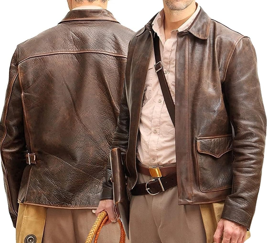 Customer Support: We’re here 24/7 to coordinate with the customer and their requirements.Important Note: We have a proper QC department where every item is inspected carefully 2-3 times before dispatch. Customer priority is our only focus; we care for our customers, and we have a 30 days easy return and refund policy. We have multiple resources for the entire operation, including manufacturing, packaging, and shipping to minimize the risk of the item being late or defective.Step into the world of classic adventure with our Men’s Indiana Hunter Leather Jacket– a timeless tribute to the iconic action film era. Crafted from premium quality leather, this jacket features a rich distressed finish in both brown and black options, evoking a rugged, weathered look straight from the big screen. Inspired by the legendary archaeologist's on-screen wardrobe, this bomber-style jacket boasts a vintage shirt collar, detailed stitching, and practical front pockets, making it a must-have for film buffs and fashion-forward explorers alike.Whether you’re gearing up for Halloween cosplay, Comic-Con, themed parties, or simply want to channel your inner hero in everyday life, this jacket delivers comfort, authenticity, and standout style. Available in genuine leather and faux leather options, it offers sizes ranging from XXS to 5XL, including Tall fits, to ensure a flattering silhouette for every adventurer.