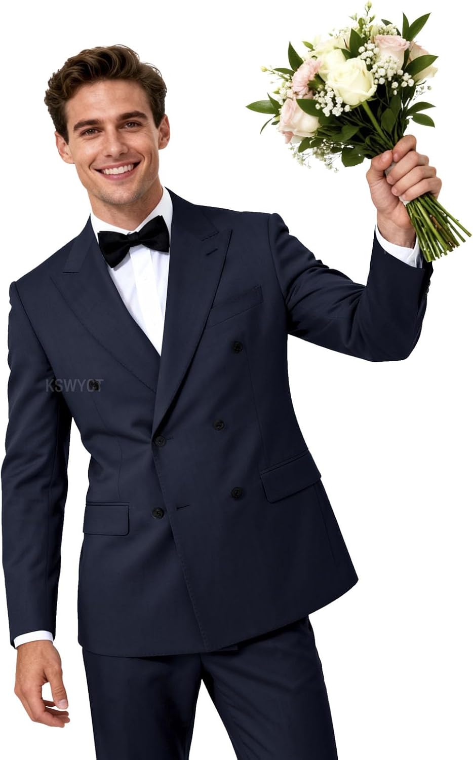 The fabric of this men suit is soft,comfortable,lightweight,and breathable,allowing you to stay elegant and gentleman during important occasion,making you look handsome and charming. Features: 1. The double breasted suit men,features peak lapel,4 sleeve buttons,2 flap pocket,1 inner pockets. 2. The fabric of this double breasted suit men is soft,comfortable,lightweight,and breathable. 3. Men suit,mens suit for wedding,elegant prom suit,men 2 piece suit,formal slim fit suit,peak lapel suit for men,men wedding suit,business formal suit,suit for men.This suit is suitable for formal or casual occasions,such as work,wedding,party,prom,date,graduation,daily life,business meeting,homecoming,holiday and travel.mens corduroy suit is casual and easy to match,suitable for spring,autumn,winter and season changing.A great gift for your husband,father and family for birthday,Thankgiving and Christmas. Customized Size: If you need the suit to be customized, please provide us with the exact measurements via Amazon. 1.Neckline =___inch. 2.Shoulder to shoulder =____inch. 3.Arm Length = ____inch. 4.Bicep= ____inch. 5.Cuff = ____inch. 6.Chest =____inch. 7.Belly=____inch. 8.Clothes Length =______inch. 9.Waist =_____inch. 10.Hips= _____inch. 11.Thigh=_______inch. 12.Pants Length= _____ inch. 13.Height=________inch. 14.your net weight=_______pound. WARM TIPS: 1.The real color of the item may be slightly different from the pictures shown on website caused by many factors such as brightness of your monitor and light brightness.