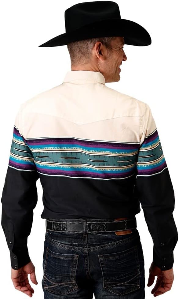 MENS LONG SLEEVE SNAP WESTERN SHIRT Border Snap 2 Pocket 100% COTTON