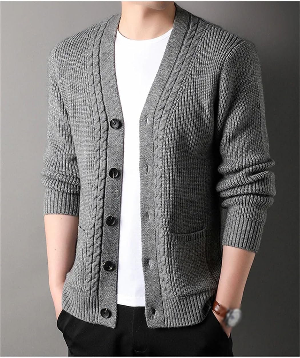Material:Wool Applicable Season:Spring And AutumnApplicable Scene:TripHooded:NoDecoration:NoneSleeve Style:RegularWool:Standard WoolPattern Type:SolidItem Type:CardiganSleeve Length(Cm):FullThickness:StandardCollar:V-NeckStyle:CasualGender:MENClosure Type:Single Breasted
