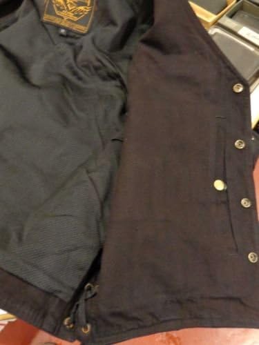 MEN'S MOTORCYCLE MOTORBIKE SNAP FRONT BLACK DENIM VEST SIDE LACES GUN POCKET