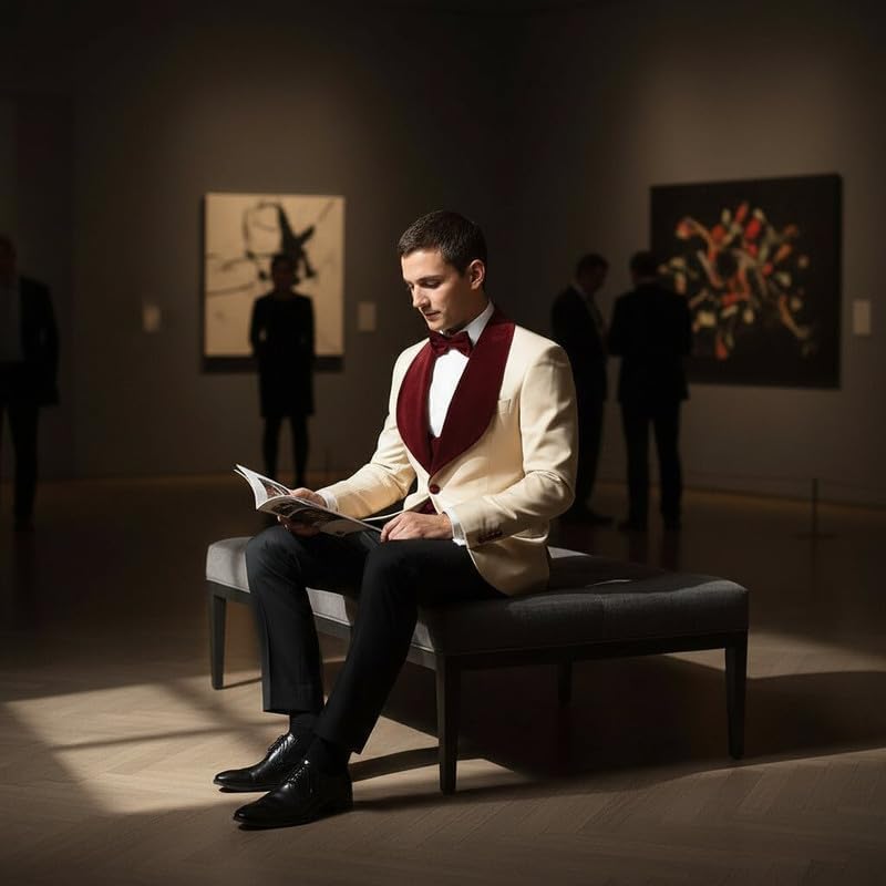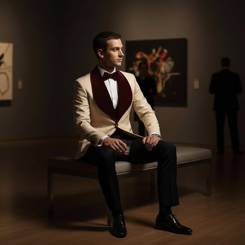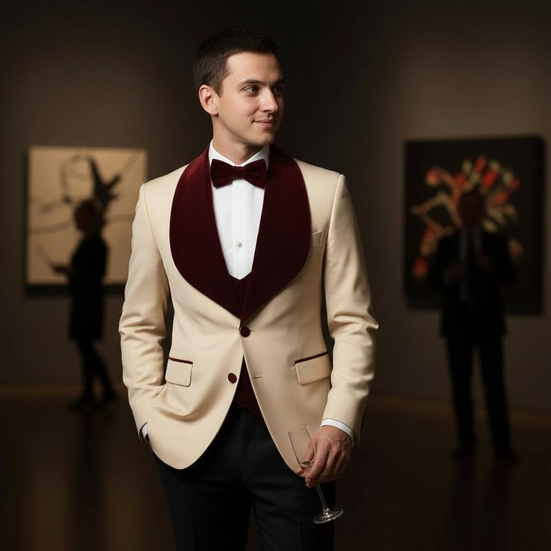 Elegant Men's 2-Piece Ensemble featuring a wide neckline, plush velvet trimming and a sleek shawl collar.