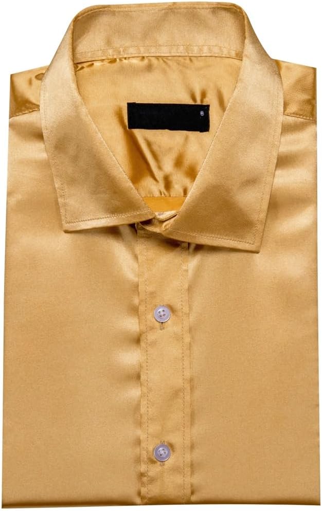 Mens Shirts Silk Mercerized Satin Gold Long Sleeve Casual Business Slim Fit Male Blouses Tops