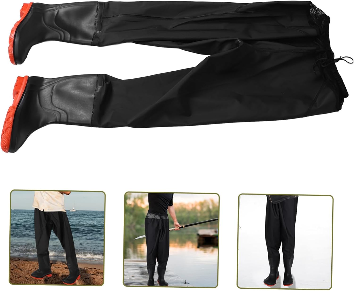 Package Include 1 x trousers 1 x PVC waterproof glue 2 x Insoles Characteristics -Material:PVC mens waders for fishing -Color:Black wading pants for men fishing -Comfort: equipped with insoles, these pants provide added comfort during prolonged wear, reducing foot fatigue and enhancing overall user experience waterproof motorcycle pants -Thickened design: the pants feature a thickened design that enhances durability, making them ideal for rigorous outdoor activities such as fishing and hunting wader -Versatility: suitable for a variety of outdoor activities including fishing, hunting, and other water related tasks, making them a versatile addition to fishing waders for women -Size:138.00X60.00X29.00cm/54.23X23.58X11.40in fishery waterproof pants -Size:6.50X1.50X0.80cm/2.55X0.59X0.31in youth waders for fishing -Size:9.00X7.00X0.30cm/3.54X2.75X0.12in fishing waders for men stocking foot -Boot size:suitable for 43 foot size mens motorcycle rain gear. -Durability: the color is resistant to , ensuring that the pants maintain a clean appearance even after extensive use in muddy or dirty environments youth wadersGoods Descriptionrain gear for motorcycle riders Our half-body waterproof pants are for men who love fishing, hunting, or any outdoor water activities.waders for women waterproof Made from durable PVC material, these pants are designed to keep you dry and comfortable.wader The thickened design ensures extra protection, making them ideal for wading through rivers or standing in the rain for extended periods