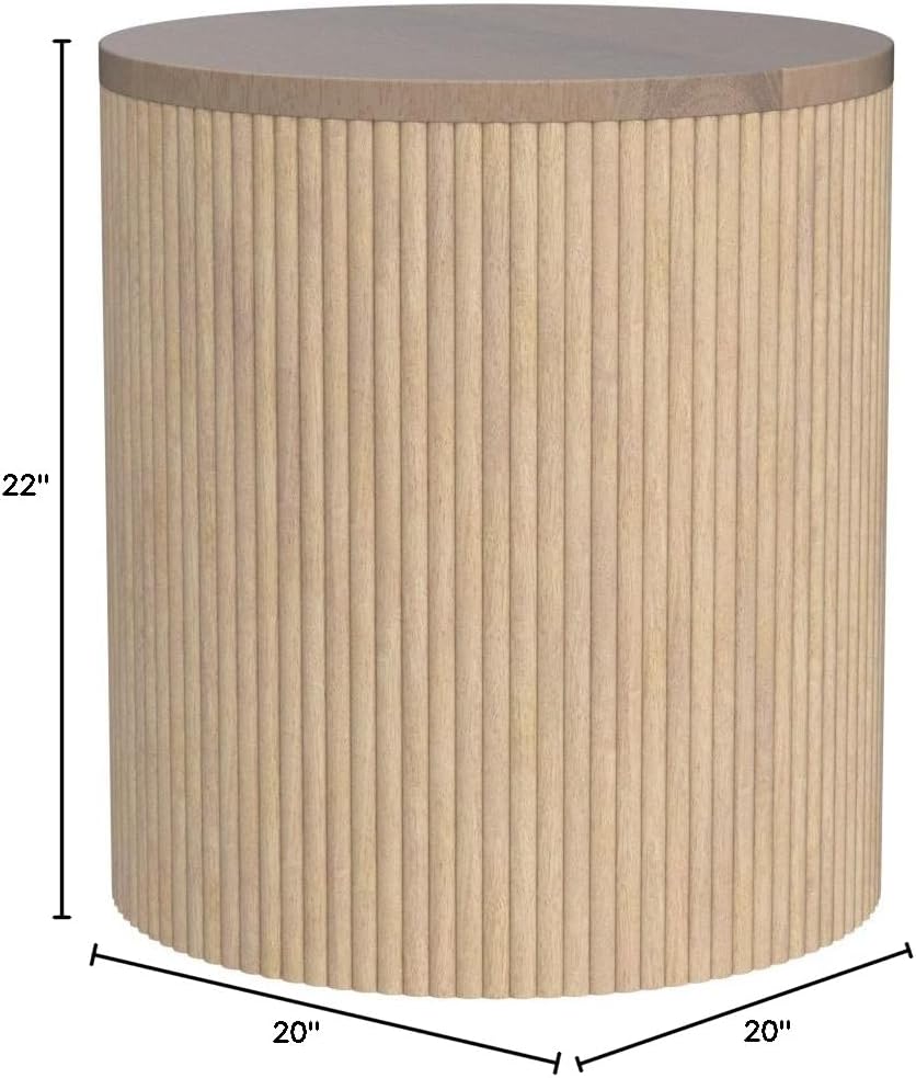 Bring contemporary design to the forefront with the addition of this Oakhill End Table to your living room or den. This eye-grabbing design features solid mango wood construction, so you can count on its durable demeanor to hold up to the rigors of use in your busy home. The fluted wood design is chic and contemporary, adding a distinctive modern vibe to your room in an instant. A white oak finish tops off the look of this Oakhill end table, adding to its visually striking beauty.