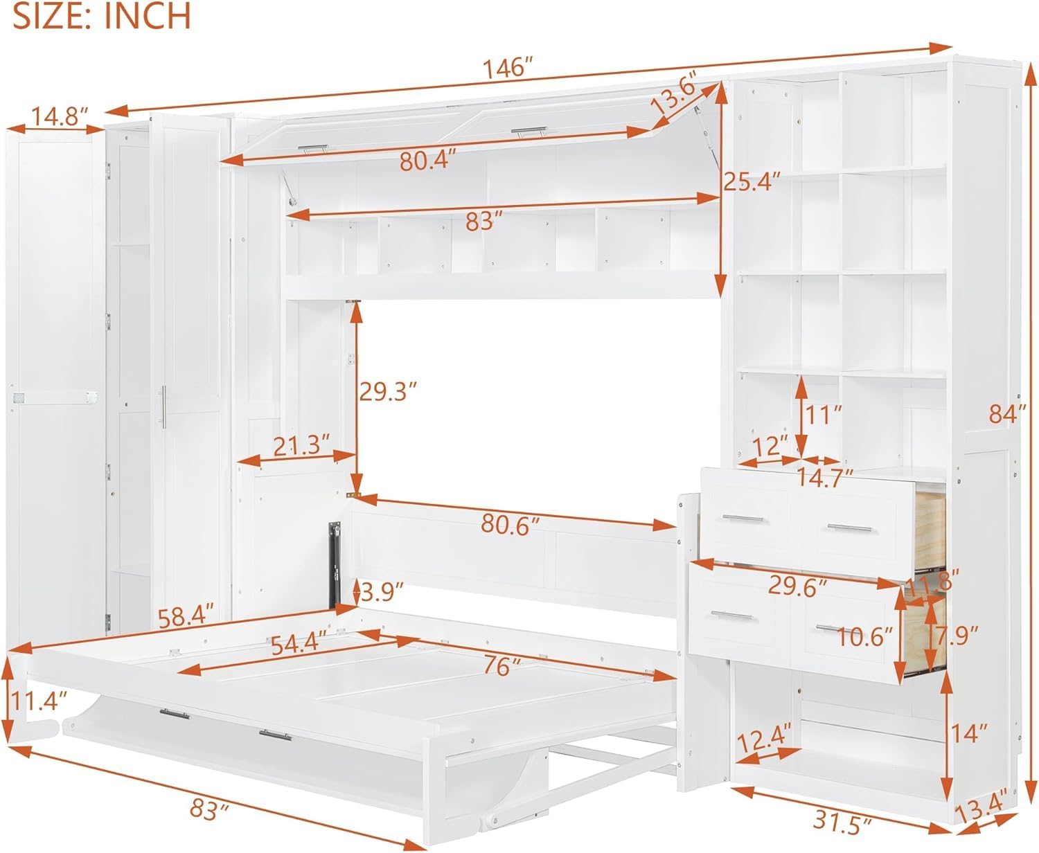 Description MaterialMDF+Wood SizeFull ColorWhite/Gray Overall Product Weight455lbs Bed Weight Capacity600lbs Recommend Mattress Thickness of Bed8-10''(max12'') OriginVietnam Numbers of Package5 Recommend Age>12 years old NotesManual measurement has been used,there may be some reasonable error. All the pictures are taken by actual samples, slight chromatic aberration may occur due to lighting or display.