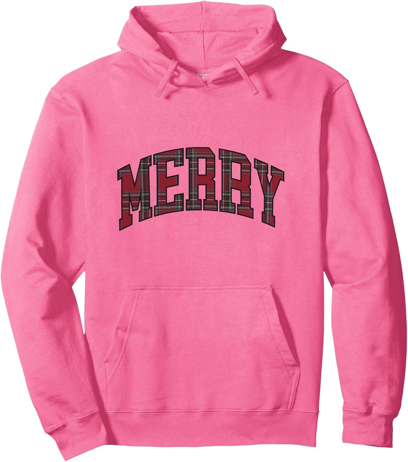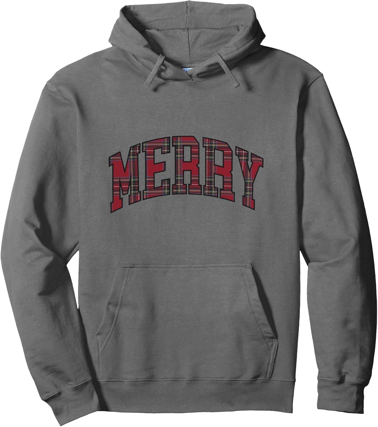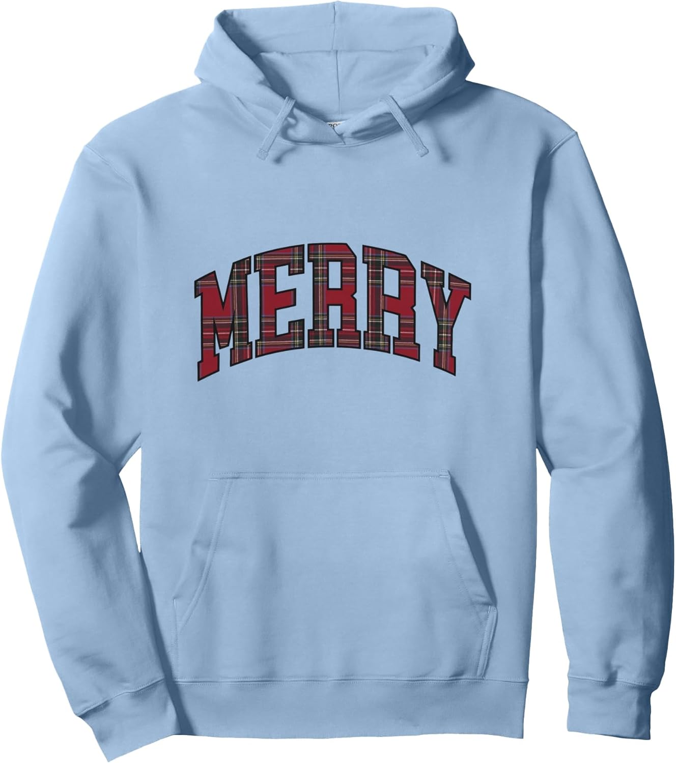 | Item Type Name | Merry Christmas Plaid Tartan Varsity Block Letter Women Kids Pullover Hoodie, Adult Unisex, White, Small |