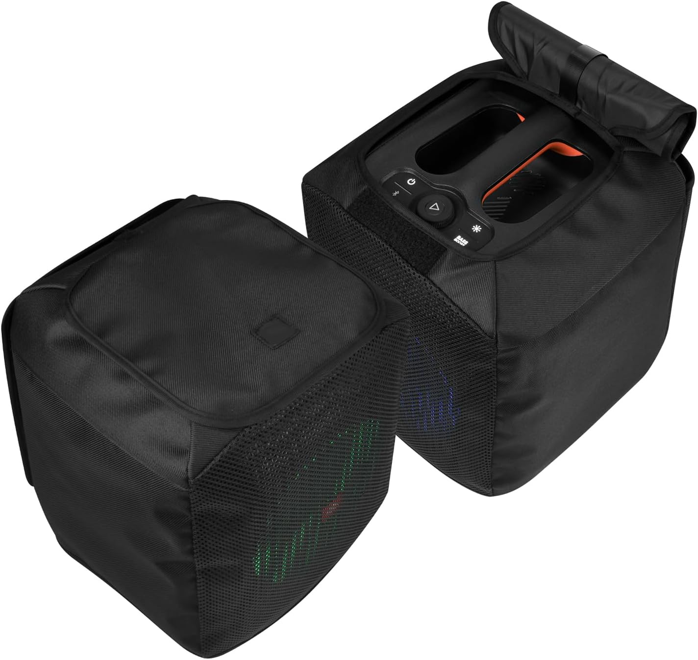 Description: Name:Fabric all-inclusive dust cover Colour:Black Material:600D encrypted nylon fabric Applicable:for JBL PartyBox Encore Essentinal Features: 1.Suitable for JBL PartyBox Encore Essentinal,an outdoor Karaoke speaker cover. 2.The front side is made of strong K306 mesh fabric surface,which protects the speakers without affecting the music playback,no need to disassemble. 3.Side Velcro adhesive opening design,easy to open and use the speaker press button and wire hole connection.