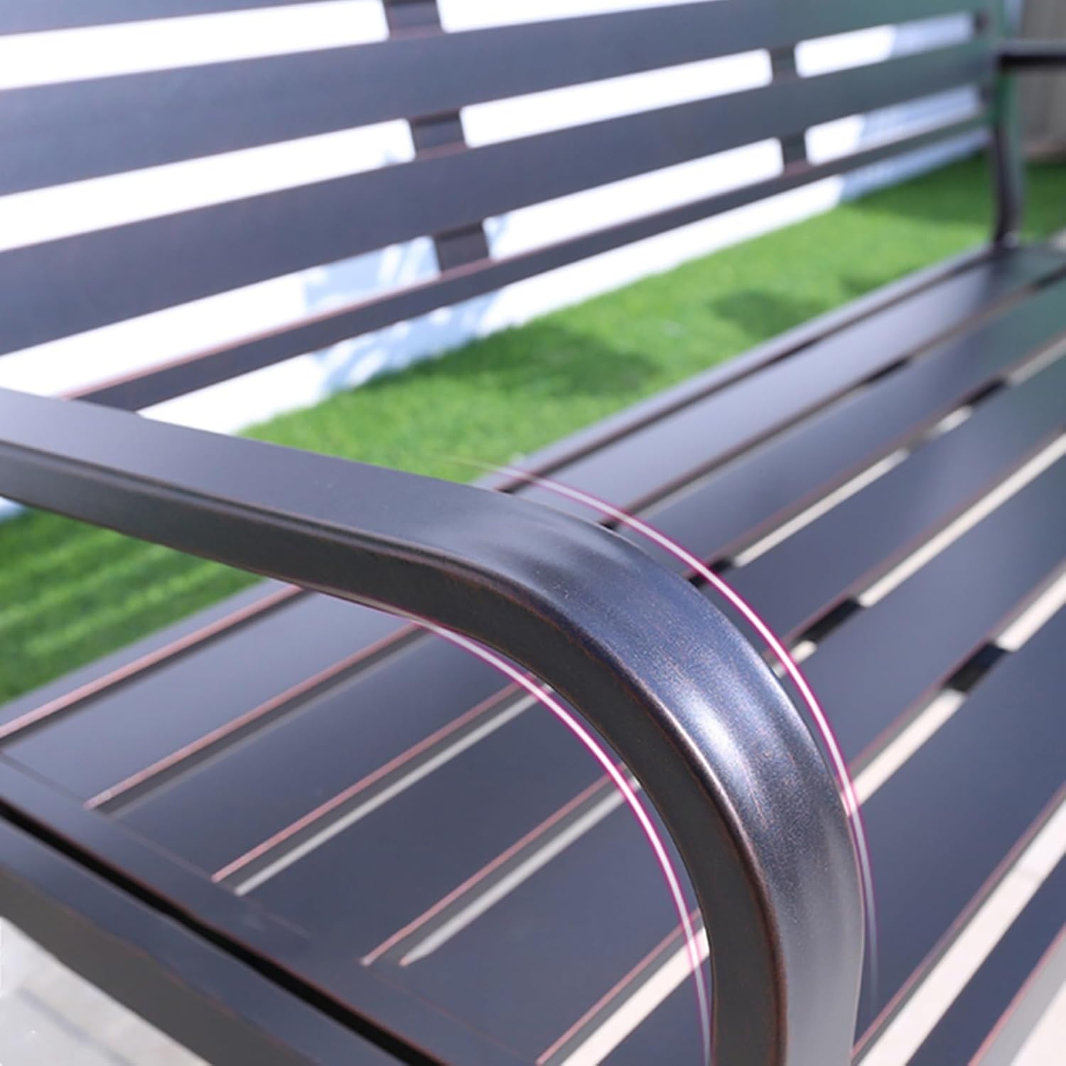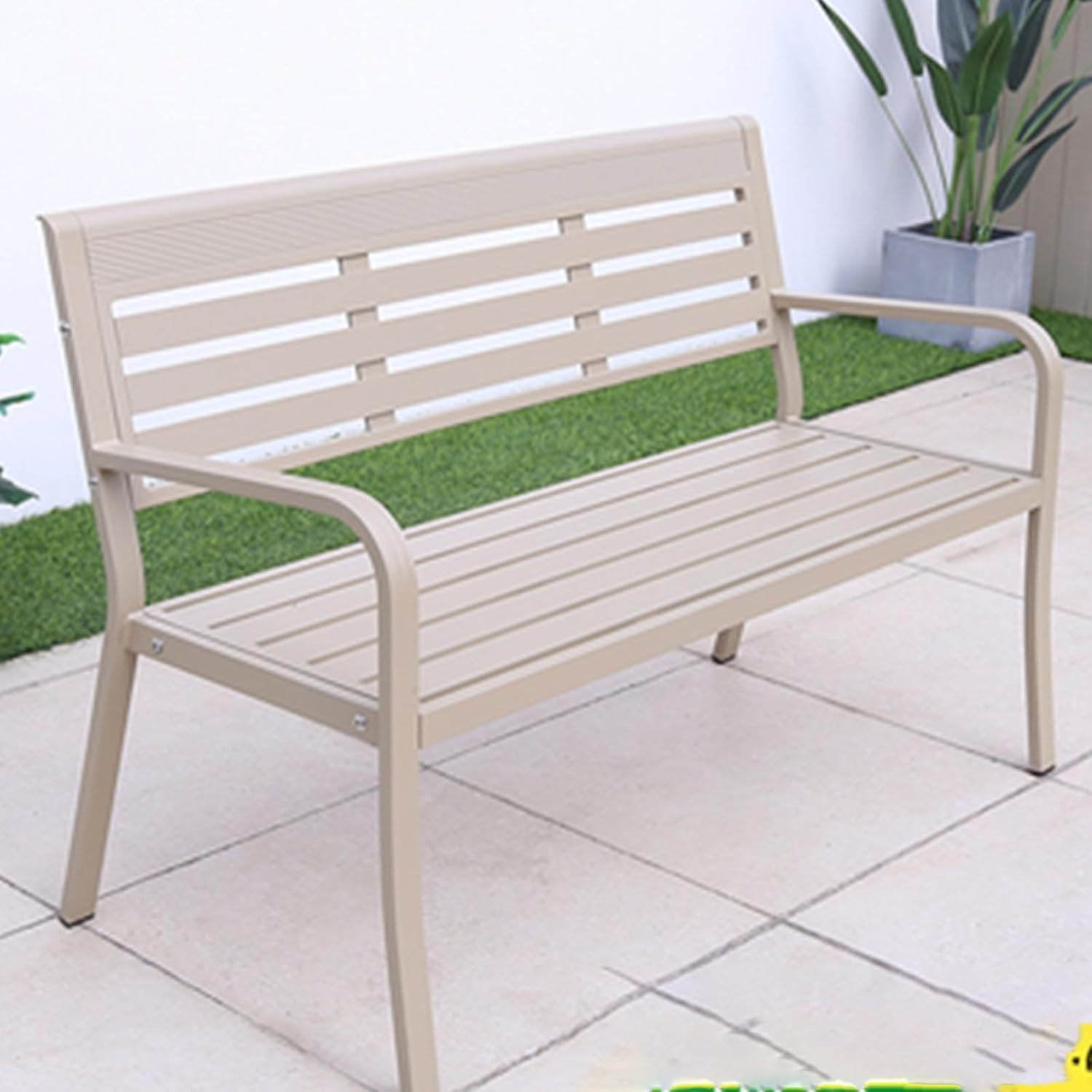 Our YQMHEZ outdoor patio bench is made of metal material, which is strong and stable.Its sturdy frame ensures stability and longevity, making it a reliable choice for outdoor usePlace it alongside a garden path for a charming accent piece or pair it with a dining table for outdoor dining convenience- Nane: Patio Metal Bench/Garden Bench/bench patio/Bench Chair/garden bench slats- Color: Beige, Black, Blue, Green- Style: Modern- Seat Material: Metal- Assembly Level Required: EasyOverall Dimensions: 125x 59 x 84cm, 49.2x23.2x33inHere's What You Get:- 1 x Trendy Garden Bench- 1 x HardwareIn addition to its practical features, our metal park bench is also a stylish statement piece for any outdoor settingNotes:- Due to manual measurement, there may be some errors in size and weight