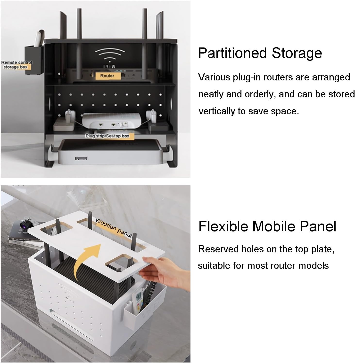 Transform your space with our multifunctional router organizer, crafted to maintain optimal wireless signal performance. This versatile accessory is compatible with most routers on the market, featuring multiple openings that allow for easy access and enhanced functionality.Key Features:1. Durable Metal Construction: Made from high-quality metal, our organizer is designed for safety and environmental sustainability, ensuring long-lasting use.2. Scratch-Resistant Surface: The smooth surface is easy to clean, helping you maintain a tidy space effortlessly.3. Convenient Remote Control Storage: The built-in side compartment keeps your remote controls organized and within reach, making it perfect for busy households or workspaces.4. Effective Heat Dissipation: The hollow design promotes airflow, preventing overheating and ensuring your devices operate efficiently. 5. Compact and Versatile: Ideal for various settings, including homes, restaurants, hotels, and offices, this organizer adapts to your unique needs.Product Specifications:- Material: Metal- Color Options: White, Black- Dimensions: 30x25x21cm / 12x10x8inPackage Contents:- 1 x Router Storage BoxPlease Note:- This listing is for the router storage rack only; other items shown are for illustrative purposes.- Variations in color and appearance may occur due to photography techniques.- Expect minor discrepancies in dimensions (1-2 cm) based on different measurement methods. We appreciate your understanding.Enhance your home or office today with this stylish and functional router organizer, designed to streamline your space while keeping your devices easily accessible.