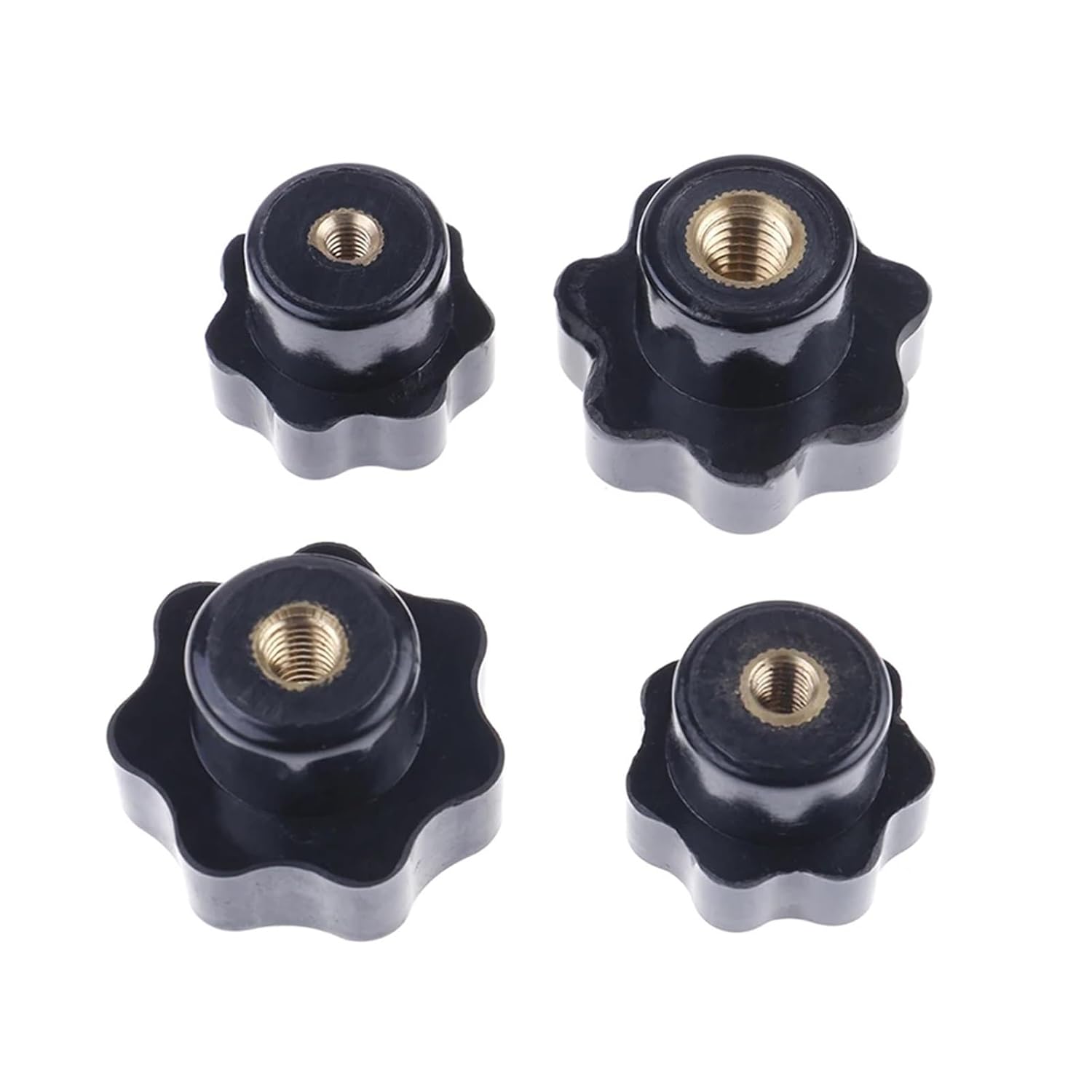 Allen NutsSpecification:Product Name: Clamping Copper Core KnobMaterial: Metal, PlasticColor: Black, GoldenSize:M4 : Star Head Diameter : 25mm, Total Height : 20mm;M5 : Star Head Diameter : 25mm, Total Height :20mm;M6: Star Head Diameter : 25mm, Total Height :20mm;M8: Star Head Diameter : 32mm, Total Height :23mm;Hign-concerned Chemical : NoneType : seven star shaped head clamping nuts knobModel Number : seven star shaped head clamping nuts knobDIY Supplies : WoodworkingCertification : None