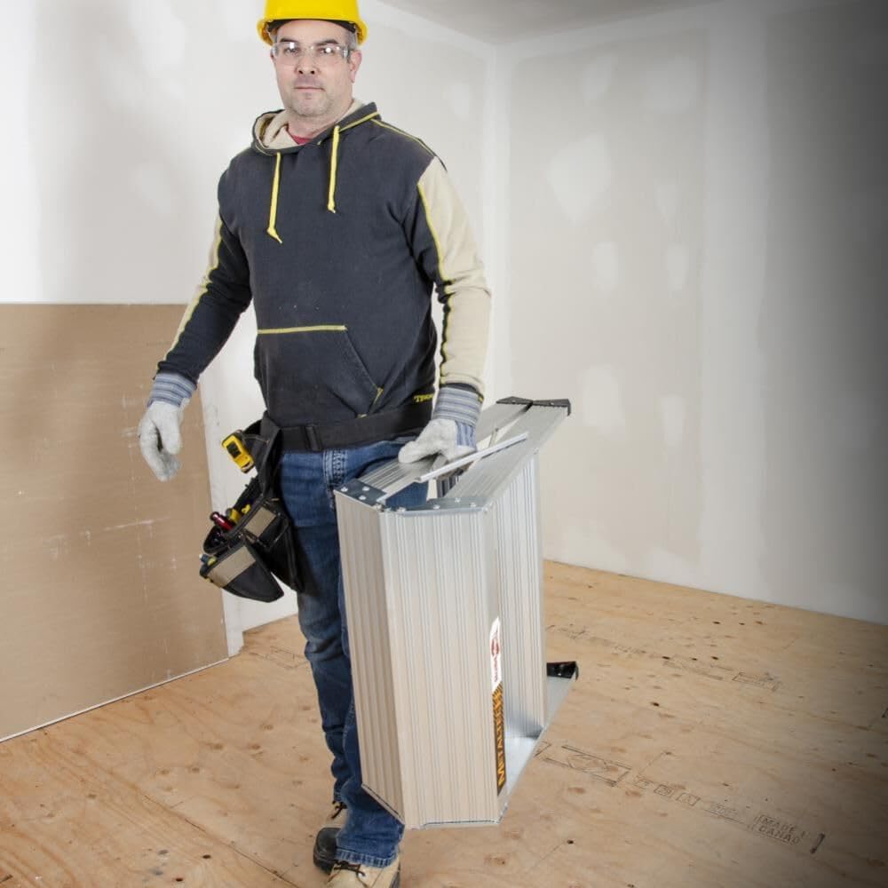 The Metaltech 4ft. Aluminum Work Stand Sawhorse is a 3-step portable unit with a rated load capacity of up to 300 lbs. The lightweight aluminum design is easy to use and transport. This work stand allows for maximum versatility. You can combine 2 work stands with a Metaltech Extendable Plank for a sturdy, reliable scaffold. Slip-resistant feet ensure stability during use.