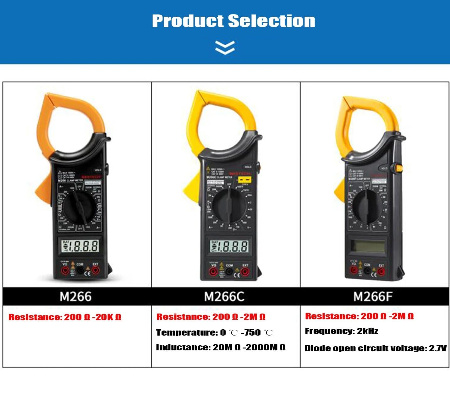 MGL MASTECH M266 M266C M266F Digital Clamp Meter Current Pliers Voltage Circuit Tester Pincers Multimeter Homeheld Professional Electrical Tool(M266)