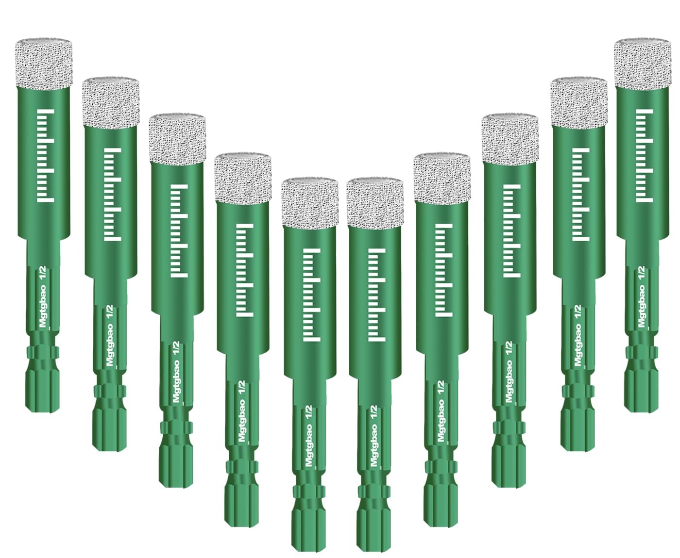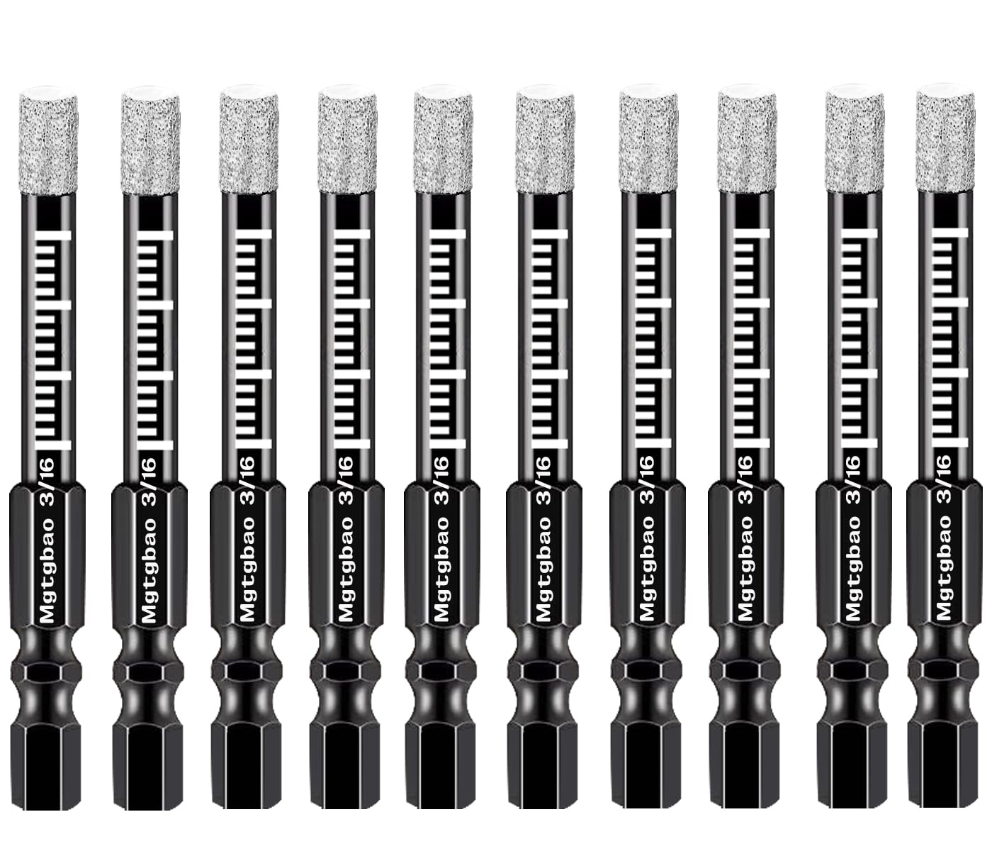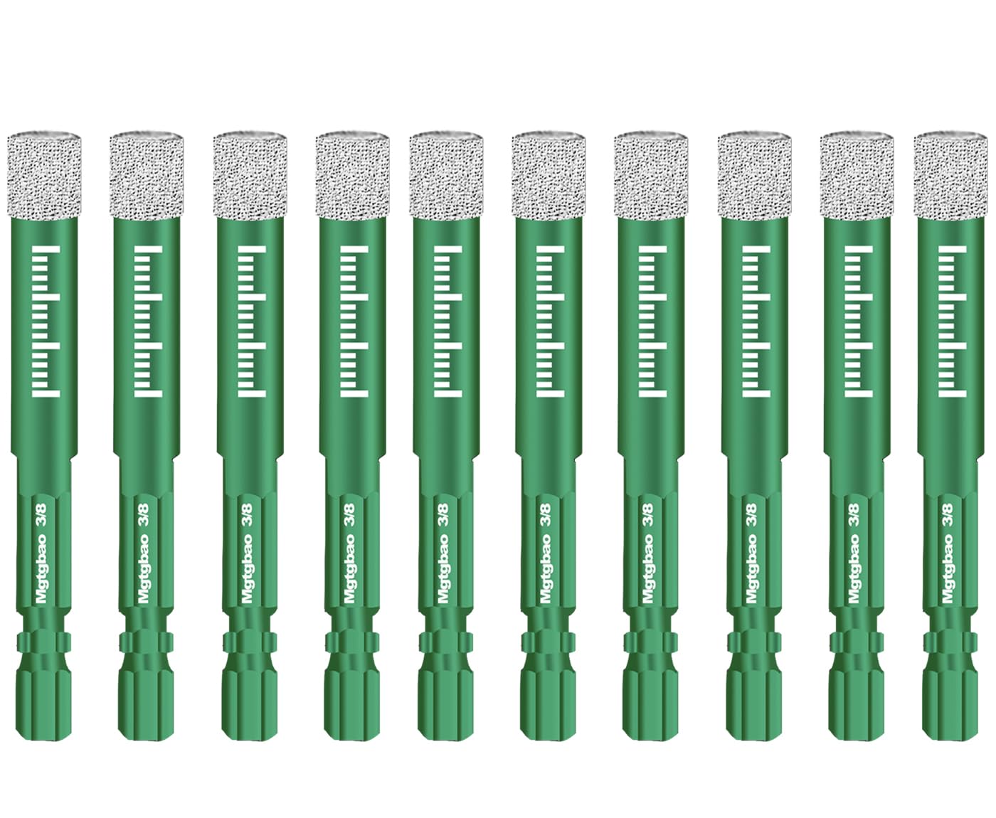 Mgtgbao Dry Diamond Drill Bits :6pc 5/8” (16mm) with Hex Shank for Porcelain Tile Ceramic Marble Feature: Multi-purpose drilling for granite & marble, masonry, concrete, tile/ceramic, stone Wax inside for cooling,our Diamond Tipped Drill Bits have wax cores built-in which automatically absorb and dissipate heat as you go Dry drilling and Use water for longer time.Notice:Please use with water when drilling granite Vacuum Brazed diamond technology provide very high efficiency,cuts faster and lasts longer Size: 5/8” (16mm) Quality:6pcs Lengthen :16mm Package includes: 6pc 5/8 inch (16mm) diamond drill bits diameter Using Steps: Step 1: Start Drilling the hole in an angle about 45 degrees to the surface, so the drill has the chance to start and will prevent the drill slipping Step 2: Slowly move the drill bit into a more up-right position and wobble the drill bit in the circular motion Step 3: Do not need to apply much pressure, let the drill bit do the work, you will feel the drill bit break through the back of the glass or tile once the hole is completed Step 4: Take care when using them as a bit can glaze and burn out if use too fast
