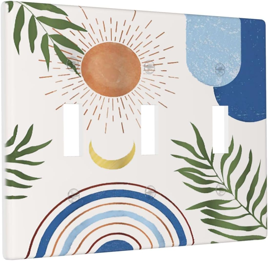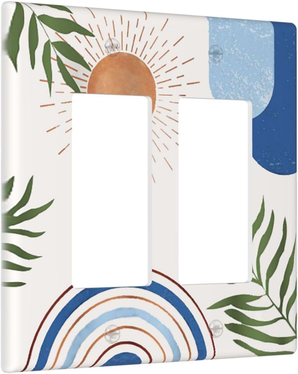 | Color | Blue And Beige Boho Arch Sun Minimalistic Leaves |