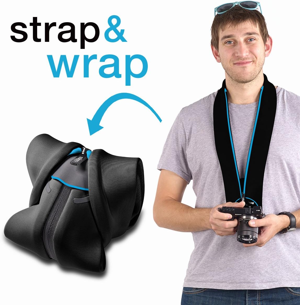 Miggo Strap & Wrap Mirrorless CSC. The world’s first camera strap that morphs into a protective camera bag. Your camera has never been safer!!! Comfortably carry your CSC or Bridge (Superzoom) camera across your torso. When done shooting, just wrap miggo around your camera and slip it into your personal bag to protect it from scratches and impact. Designed for right and left handed, miggo will accommodate the majority of small-medium CSC and Bridge (Superzoom) cameras equipped with short to long lenses due to its unique modular adaptor system. Made from high quality Neoprene and Lycra, miggo ensures comfort and durability along with excellent protection for the camera. The padded strap can be carried across your torso while the weight is evenly distributed for comfort. miggo’s specially designed multipurpose nickel-coated steel screw serves as a secure connector to the 1/4-20 tripod socket located on the camera body. It also allows you to connect a tripod while miggo is attached. A designated flexible inner pocket is designed to carry a lens cap when it’s not attached to the lens. A safety cord will keep your camera secured to the strap.