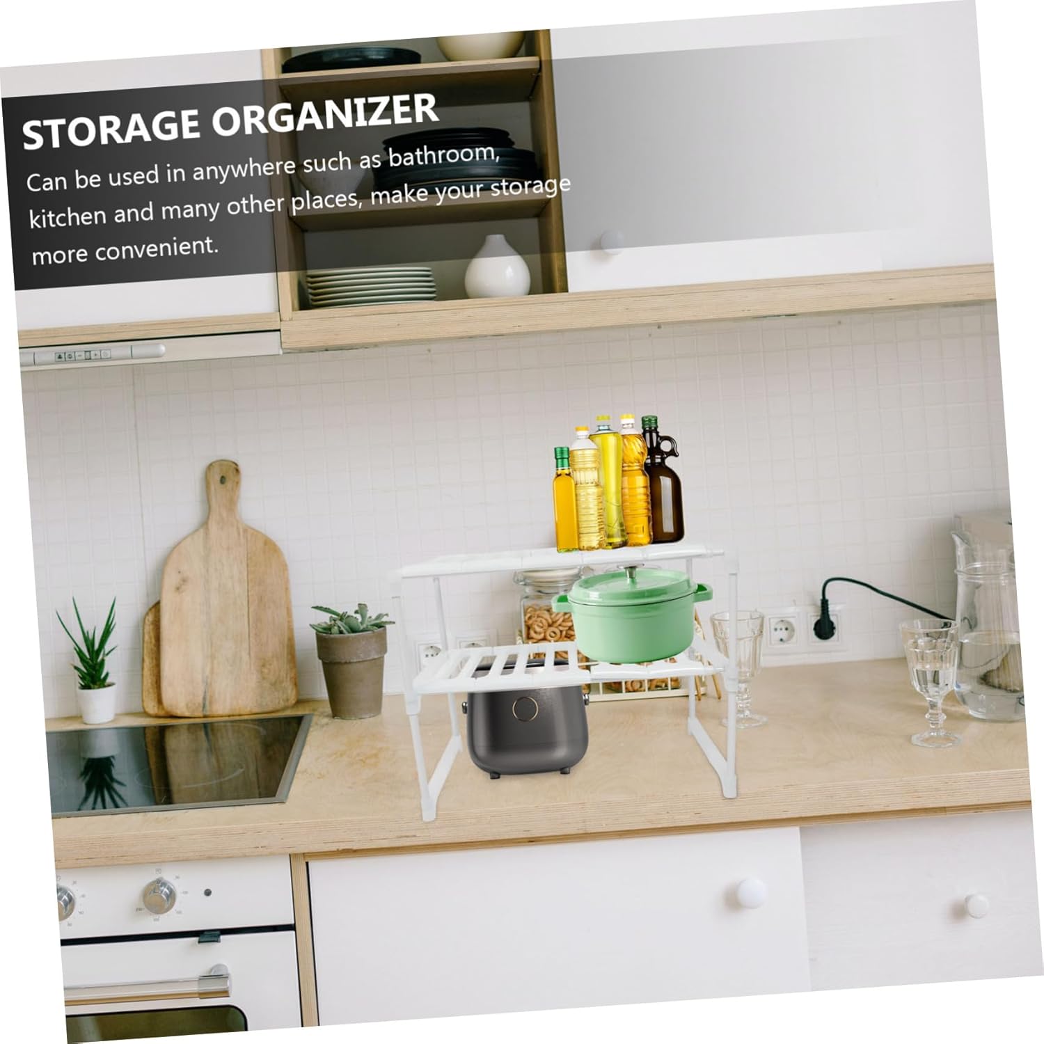 Package Include 1 x storage rack Features - Color: White Kitchen Utensils Holder - Length Telescopic Range: 52-68cm/20.47-26.77inch Storage Shelf - Material: Stainless steel, PP Pan Organizer - Size: 52.00X44.00X30.50cm/20.44X17.29X11.99inch Under Sink Organizer - Can be used in anywhere such as bathroom, kitchen and many other places, make your storage more convenient Bathroom Rack. - Easily stores skillets, pans, pots, griddles, dishes, trays, and more! Kitchen Supplies - A nice home kitchen storage rack, just a few minutes, all your things can be organized well Kitchen Utensils Rack. - Stainless steel and plastic material, strong durability, strong wear resistance and strong load-bearing capacity Kitchen Sink Shelf. - You don't need to worry about the shelf can not being placed in the cabinet under the sink Under Sink Rack.Goods InformationKitchen Utensils Holder Can also be used as an under sink storage for bathroom, or even a kitchen counter shelf.Bathroom Storage Rack Adjust the height and length to meet your needs for bathroom and kitchen.Storage Shelf This under sink organizer rests comfortably under almost all sinks