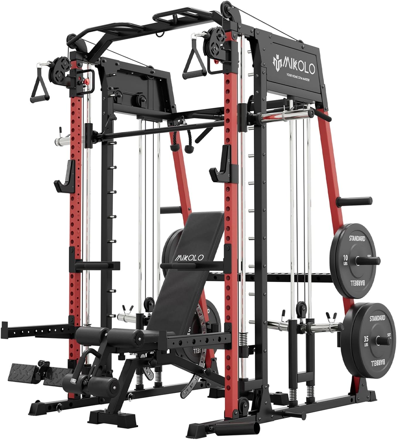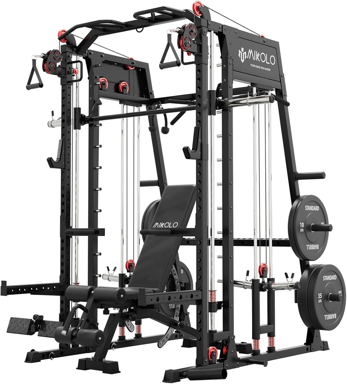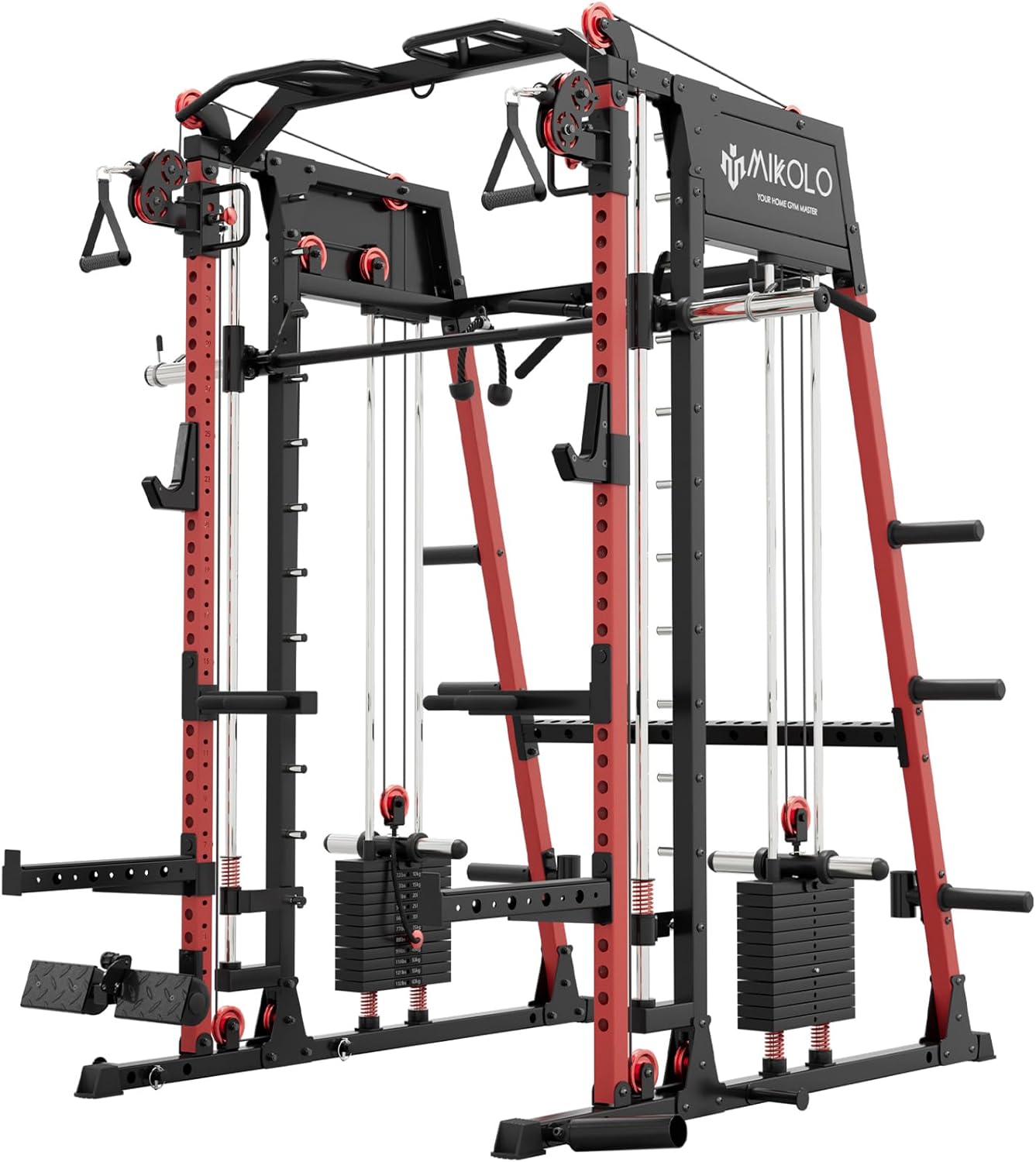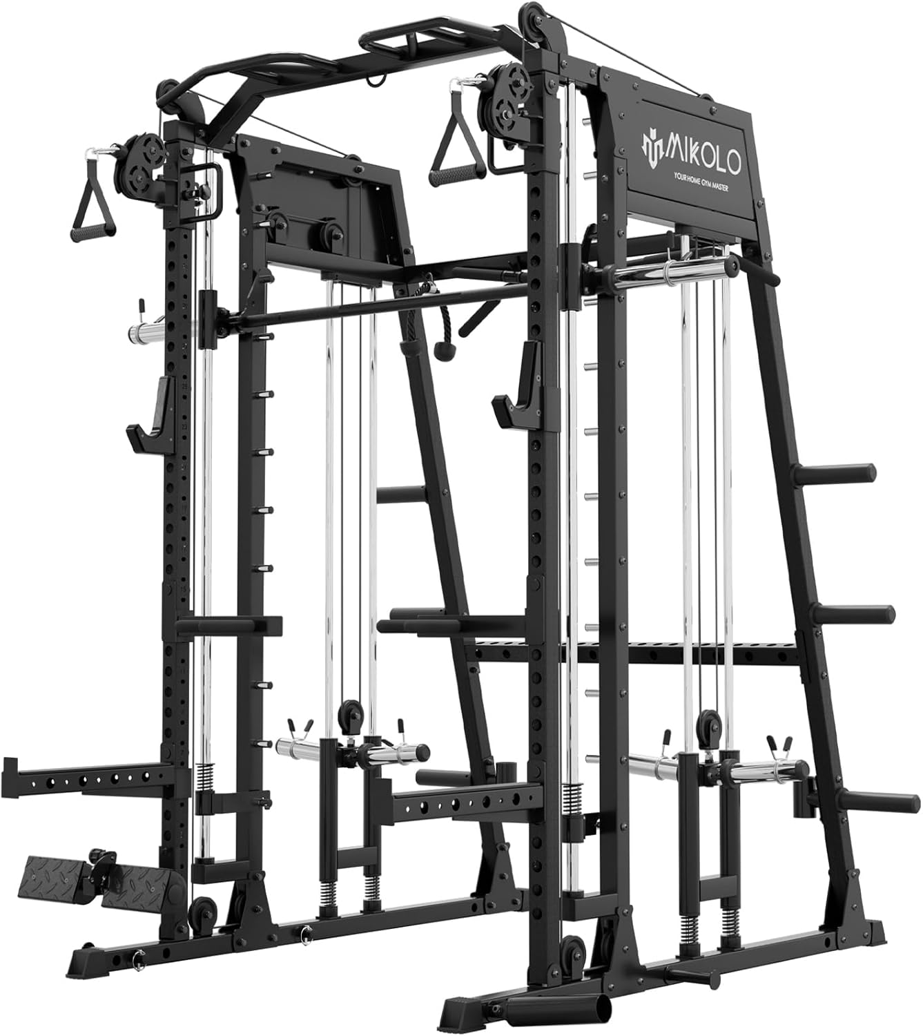 Mikolo M4 2.0 Standard/Ultra/Elite Smith Machine, 2200lbs Squat Rack with LAT-Pull Down System & Cable Crossover Machine, Training Equipment with Leg Hold-Down Attachment