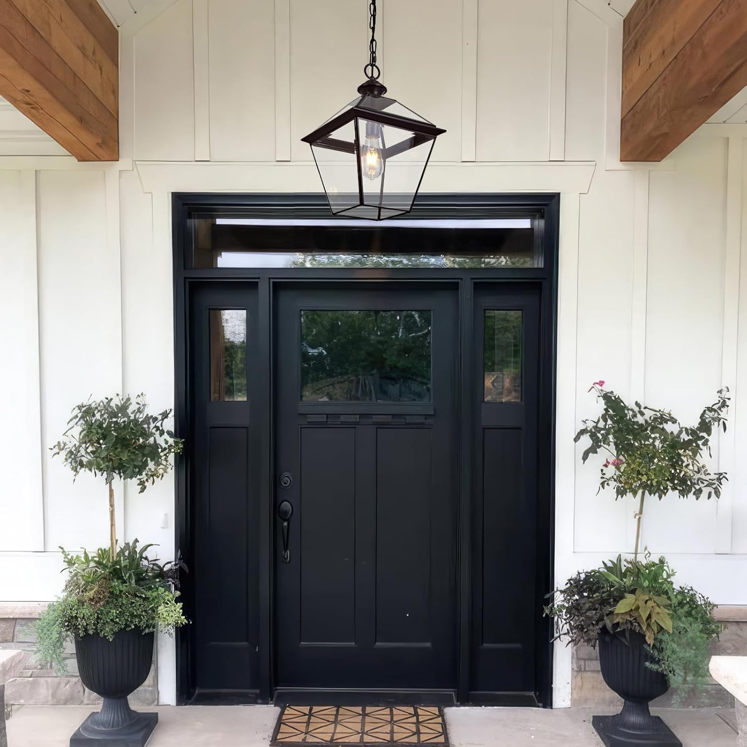 • Modern Sturdy Design: This outdoor hanging light features a classic bronze finish, thickened and reinforced clear temmpered glass panes, which make this bronze outdoor lighting a art decoration daytime, and a warmly brightened up exterior light fixtures at night