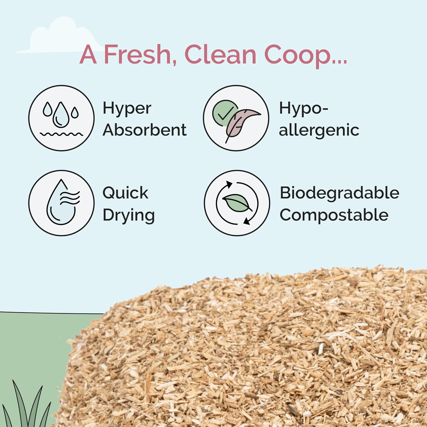 | Product Benefits | Absorbs moisture and reduces odors for clean coop |