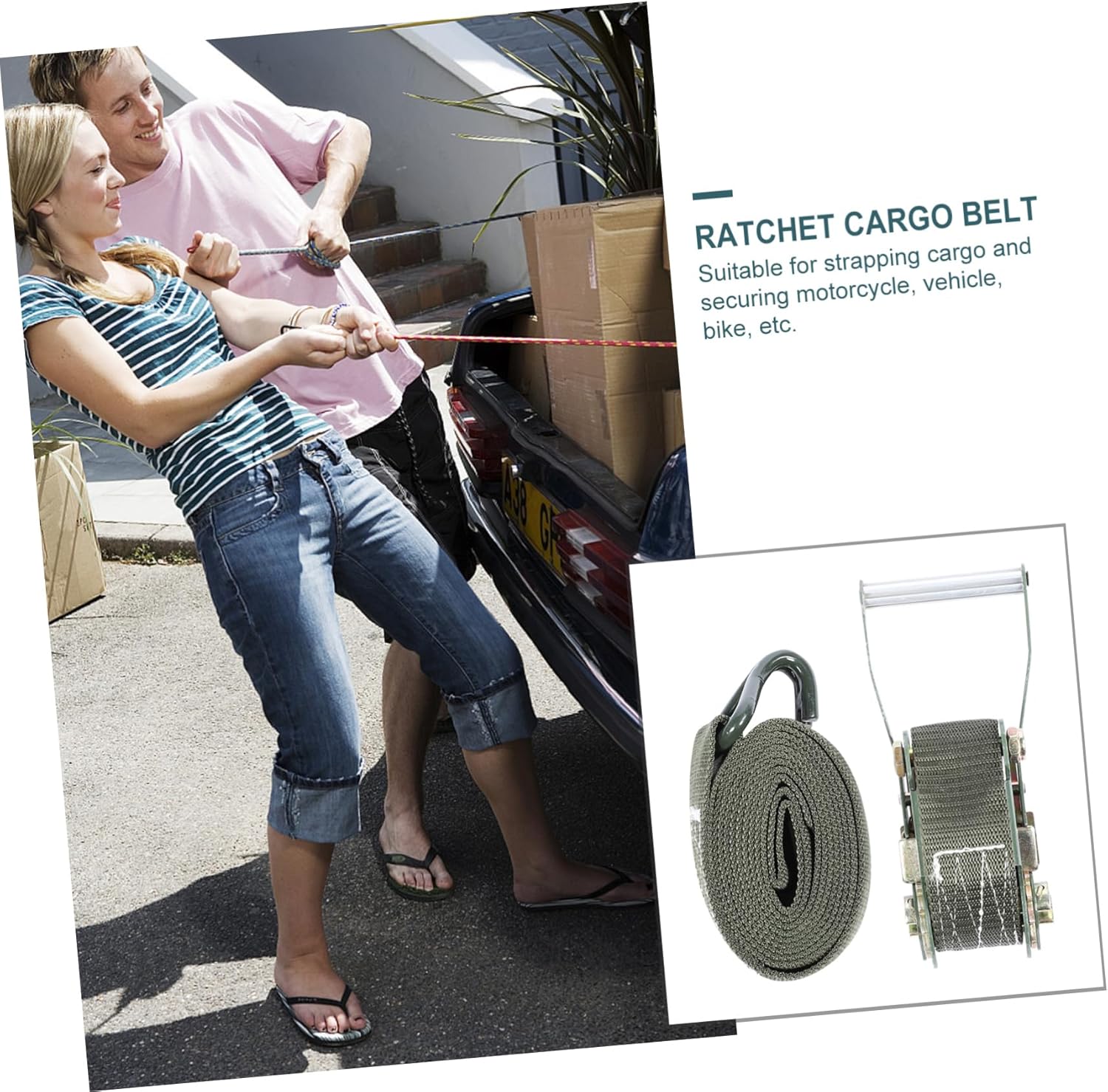 Package List 1 Set x Bundling Belt Features - Color: Dark green Ratchet Strap. - Size: 300.00X9.80X0.60cm/117.90X3.85X0.24inch Tiedowns for Securing Cargo. - Material: Polyester, metal Motorcycle Traps. - The webbing made of materials has good load-bearing capacity Cargo Binding Belt. - , you can buy this practical product at an Ratchet Cargo Belt. - With the reinforced metal ratchet buckle, the strap has a compact structure for to deform and preventing the Truck Straps. - and outstanding craftsmanship ensure its practicality and durability Heavy Duty Tiedowns. - Plays a fixed role in the transportation, movement or storage of goods Tie Down Straps With Hooks.Goods DescriptionRatchet Cargo Strap Widely used to tie kayak, luggage, surfboard and bike on your roof rack.Ratchet Tie Down Belt Made of material, strong and lightweight.Heavy Duty Tie Down This item is designed for cargo bundling and tightening.Tie Down Straps Comes in handy.Cargo Strap Convenient and easy to use, fastening quickly and firmly.Cargo Straps Added for your convenience! and outstanding craftsmanship ensure its practicality and durability