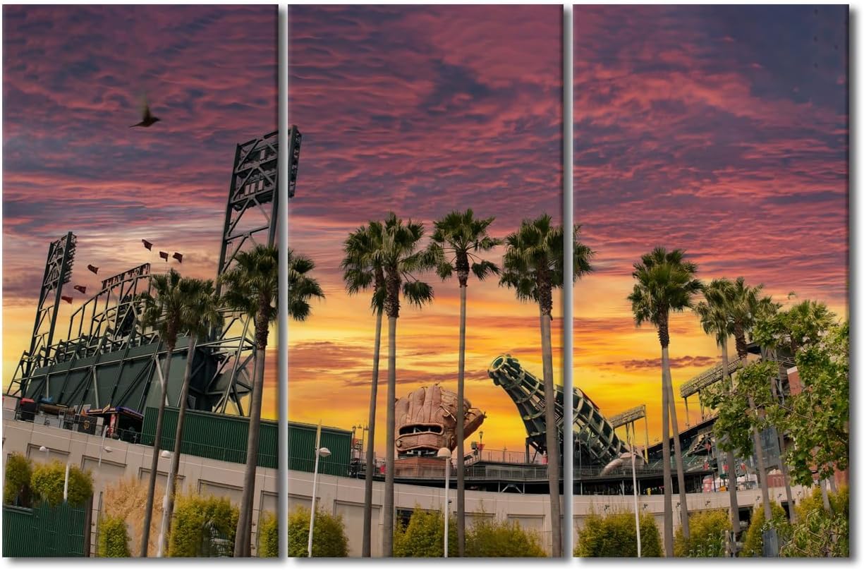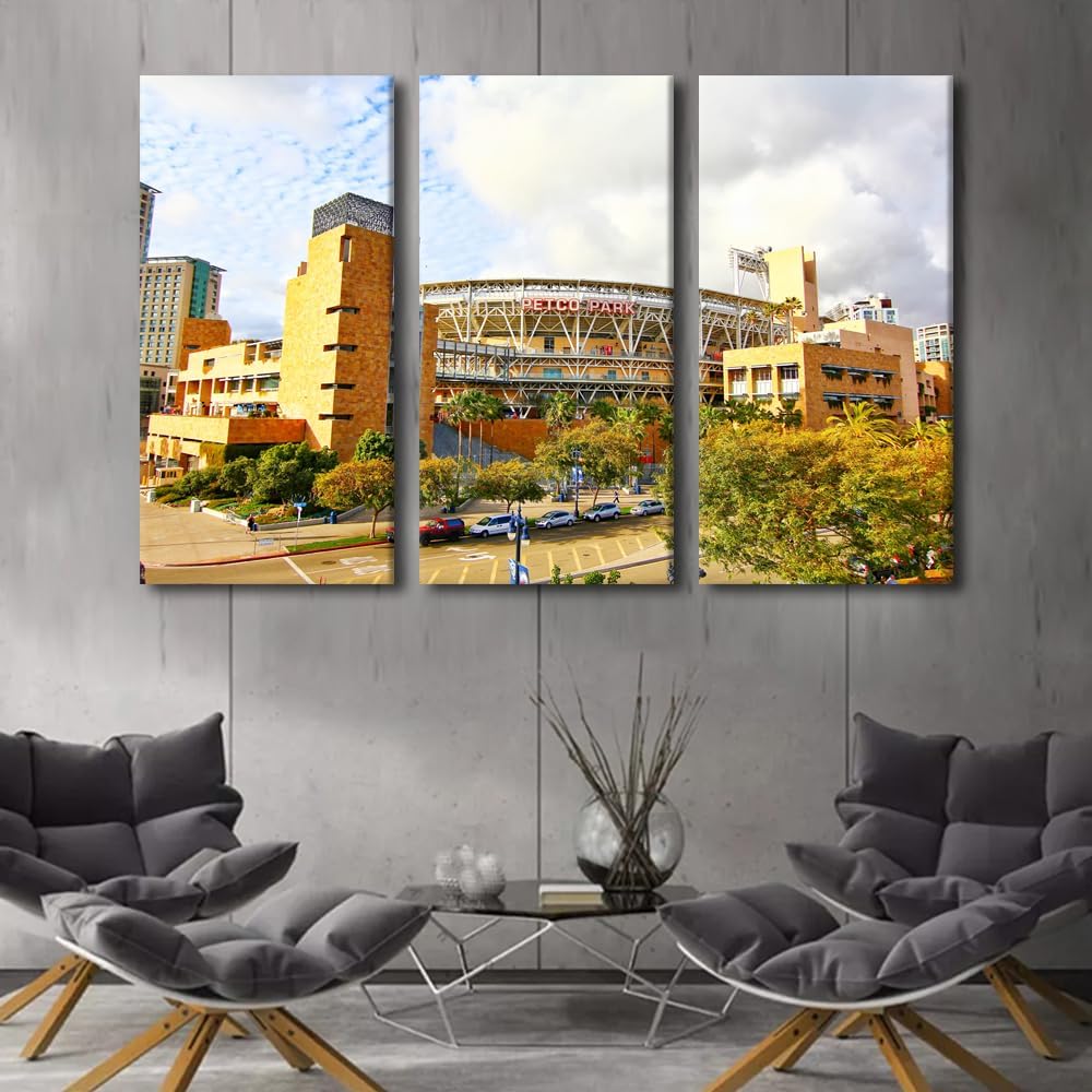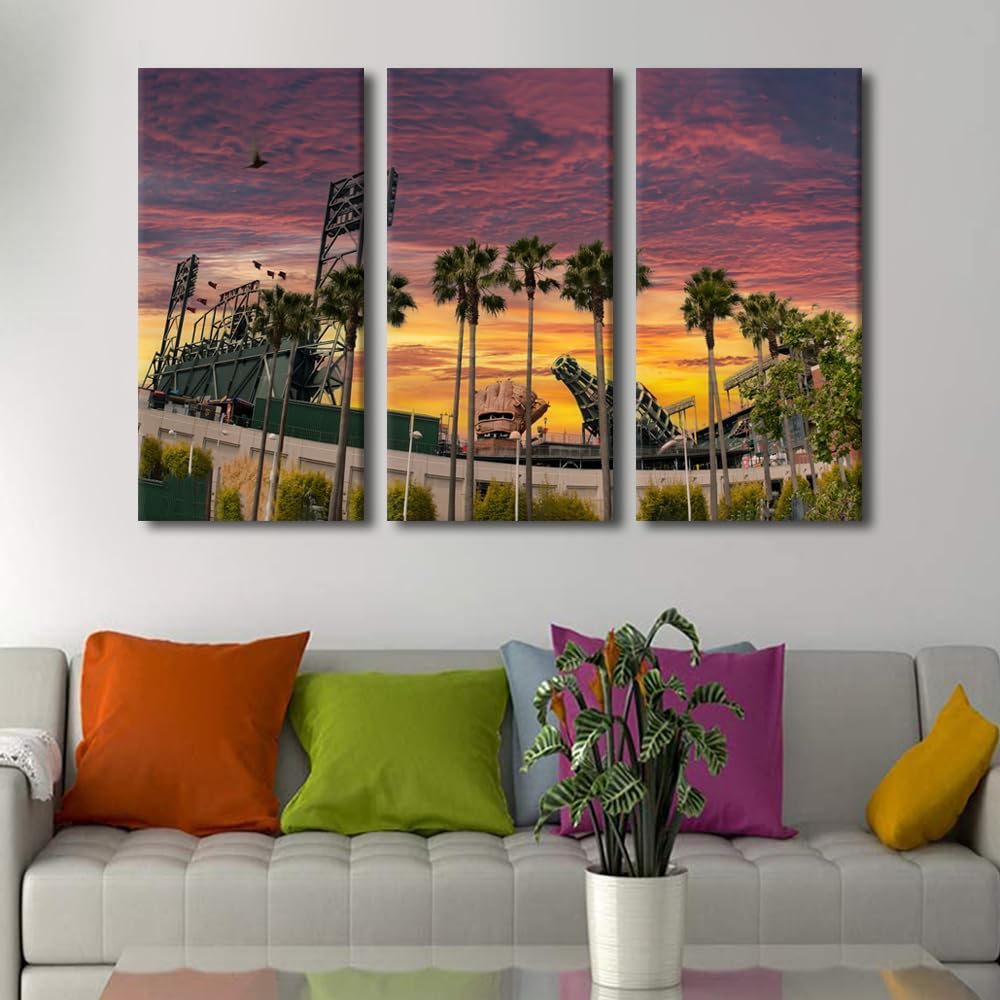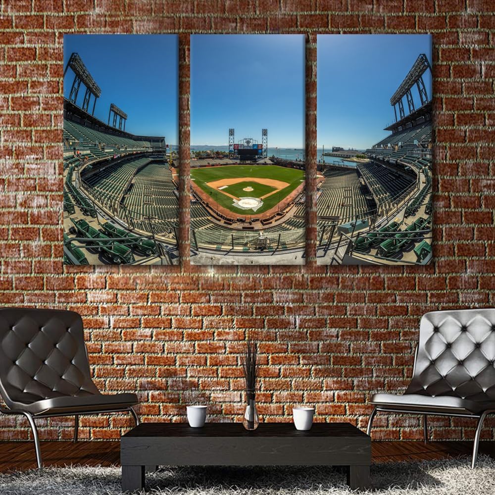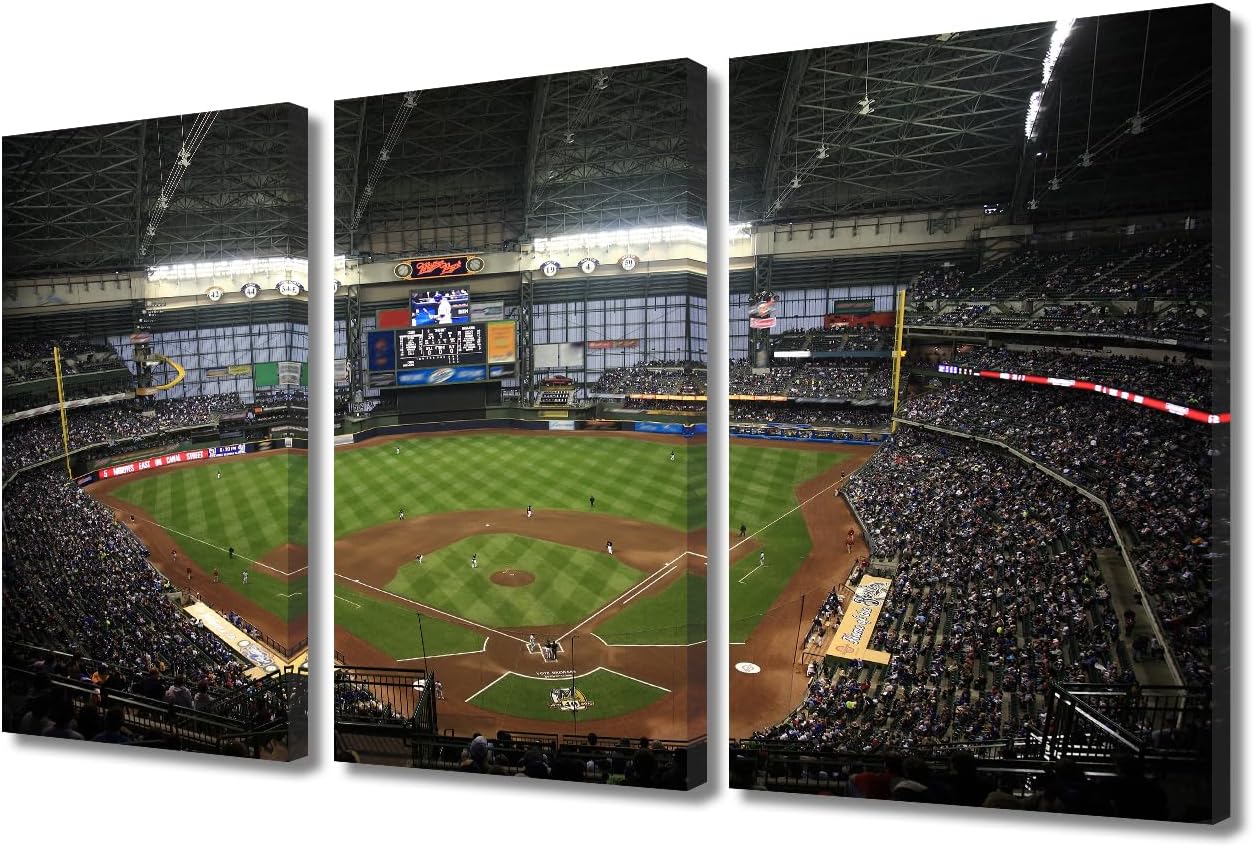 Miller Park Wall Decor Milwaukee, Wisconsin Posters Prints on Canvas Baseball Stadium Wall Art 3 Panels Bedroom Decor Modern Home Decor for Living Room Framed Ready to Hang (42" Wx28''H)