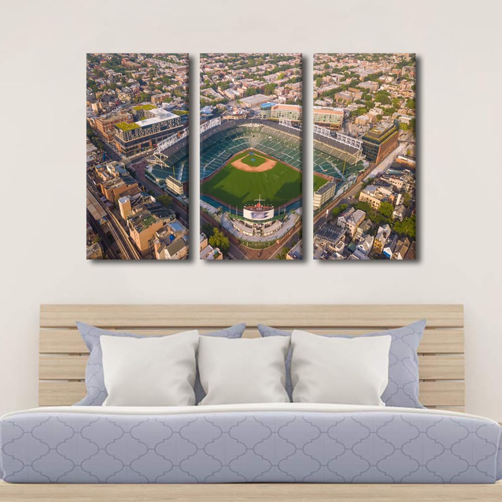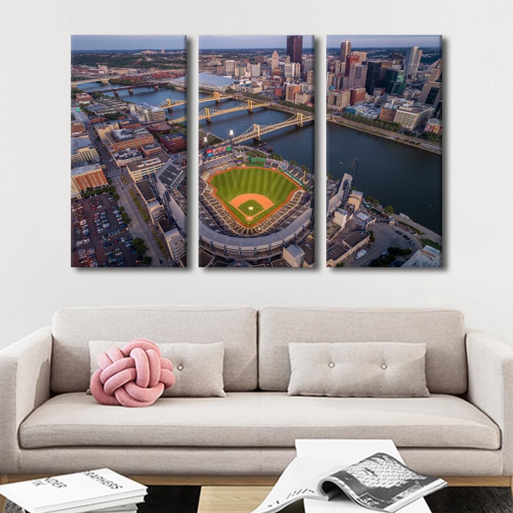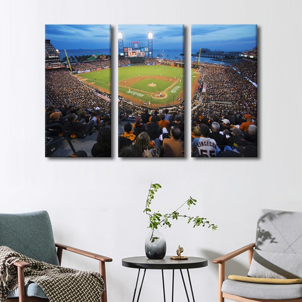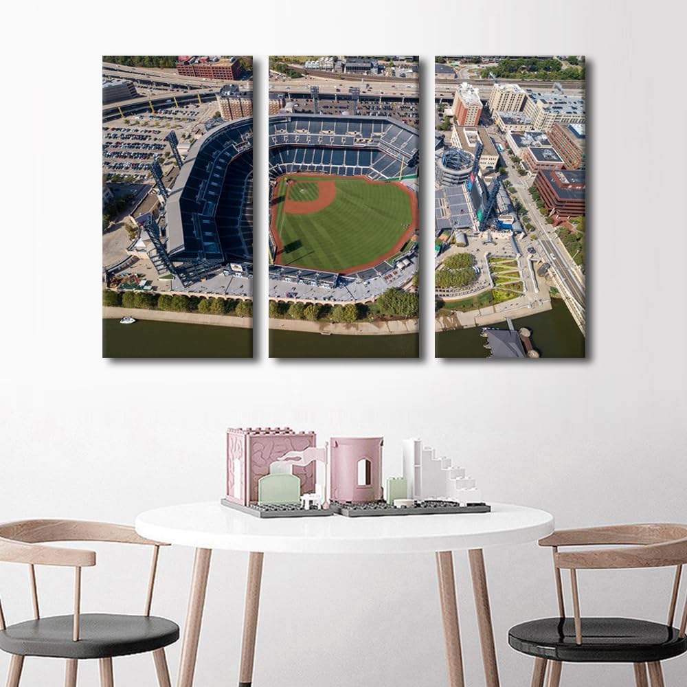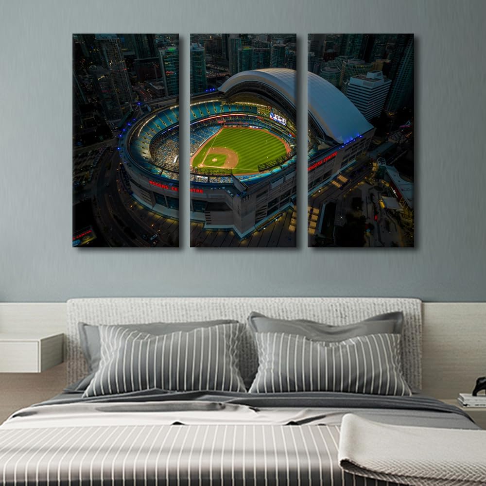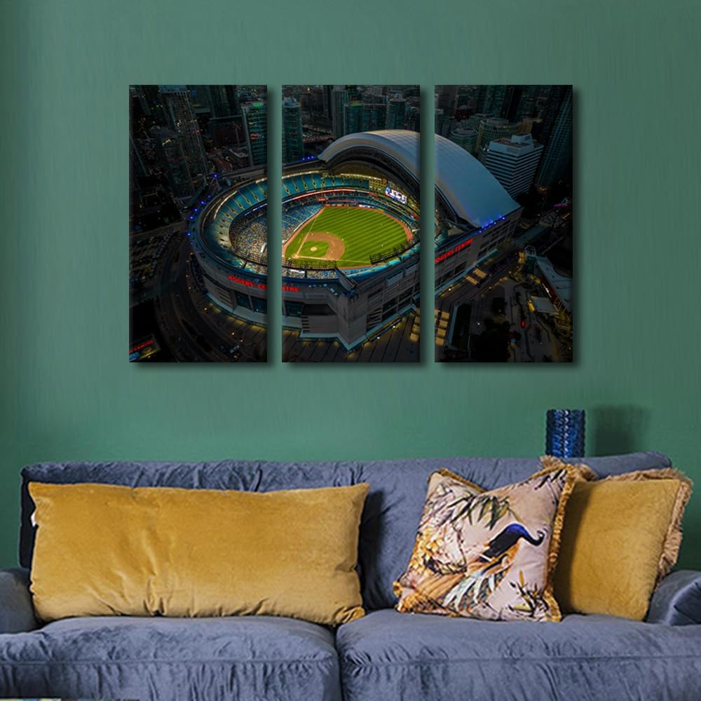 Miller Park Wall Decor Milwaukee, Wisconsin Posters Prints on Canvas Baseball Stadium Wall Art 3 Panels Bedroom Decor Modern Home Decor for Living Room Framed Ready to Hang (42" Wx28''H)