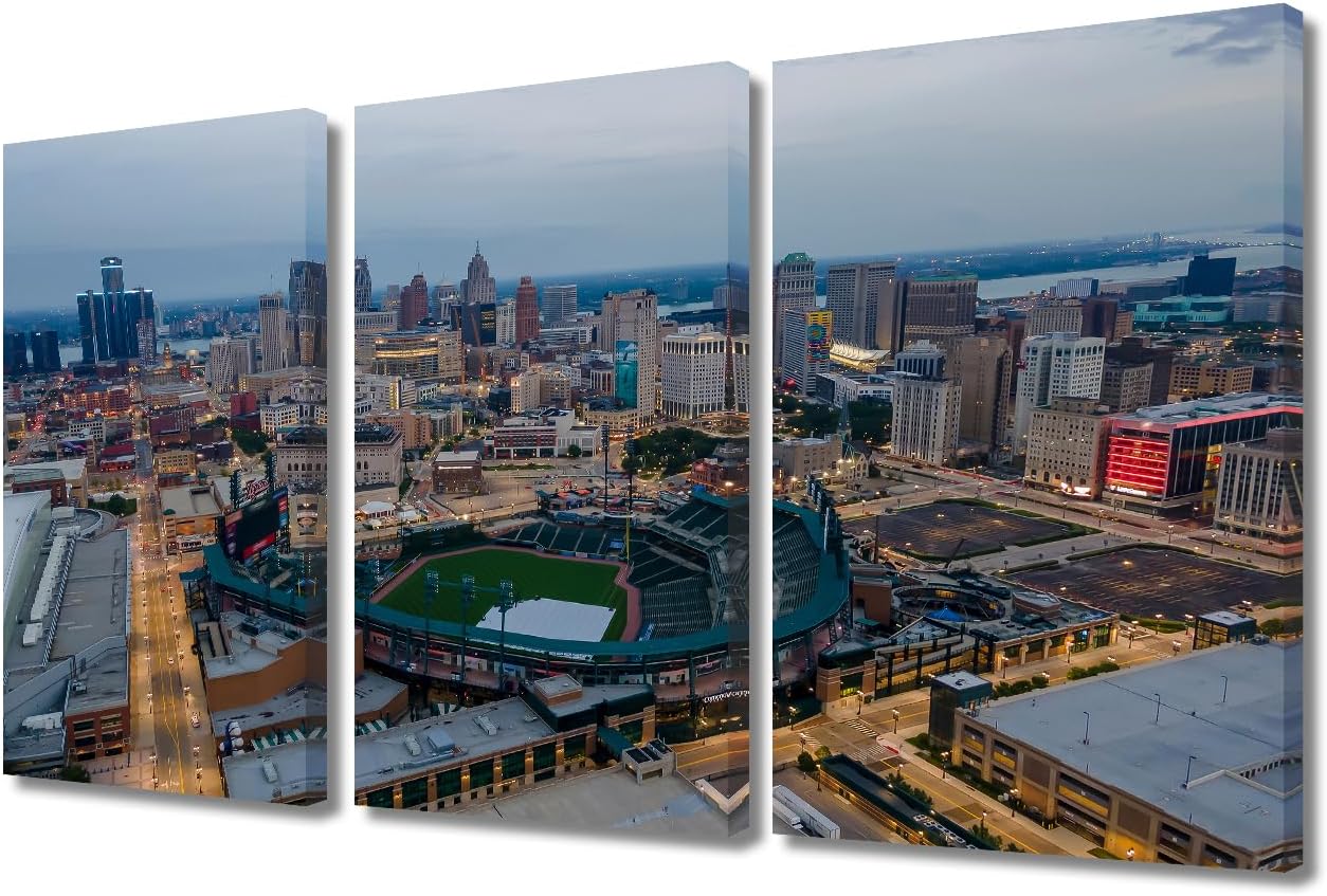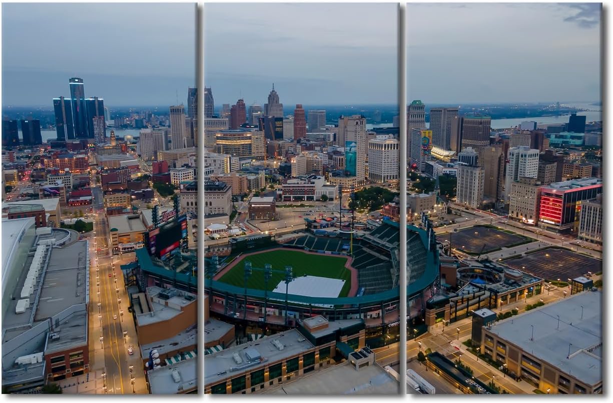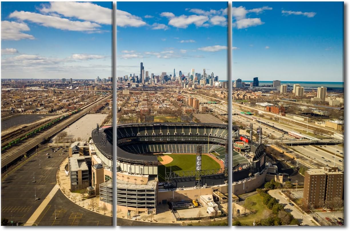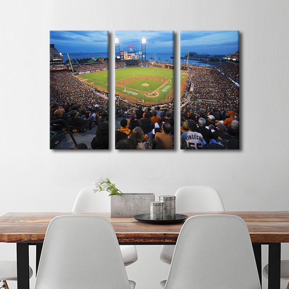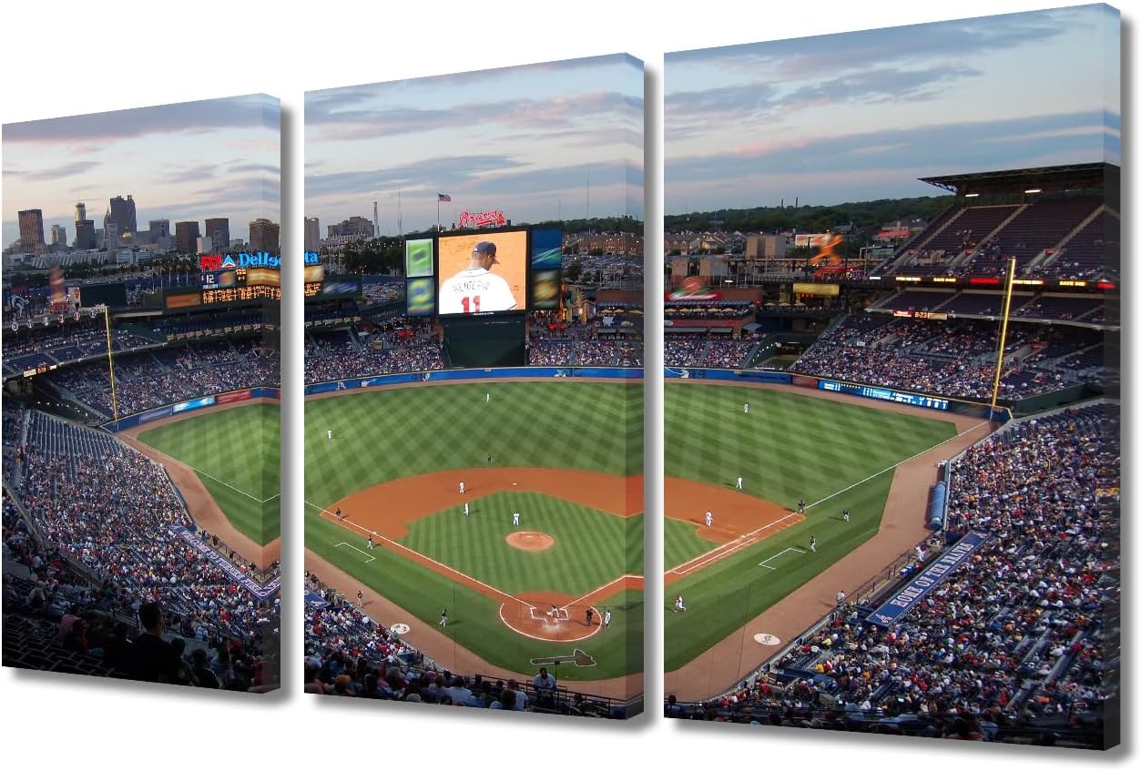 Miller Park Wall Decor Milwaukee, Wisconsin Posters Prints on Canvas Baseball Stadium Wall Art 3 Panels Bedroom Decor Modern Home Decor for Living Room Framed Ready to Hang (42" Wx28''H)