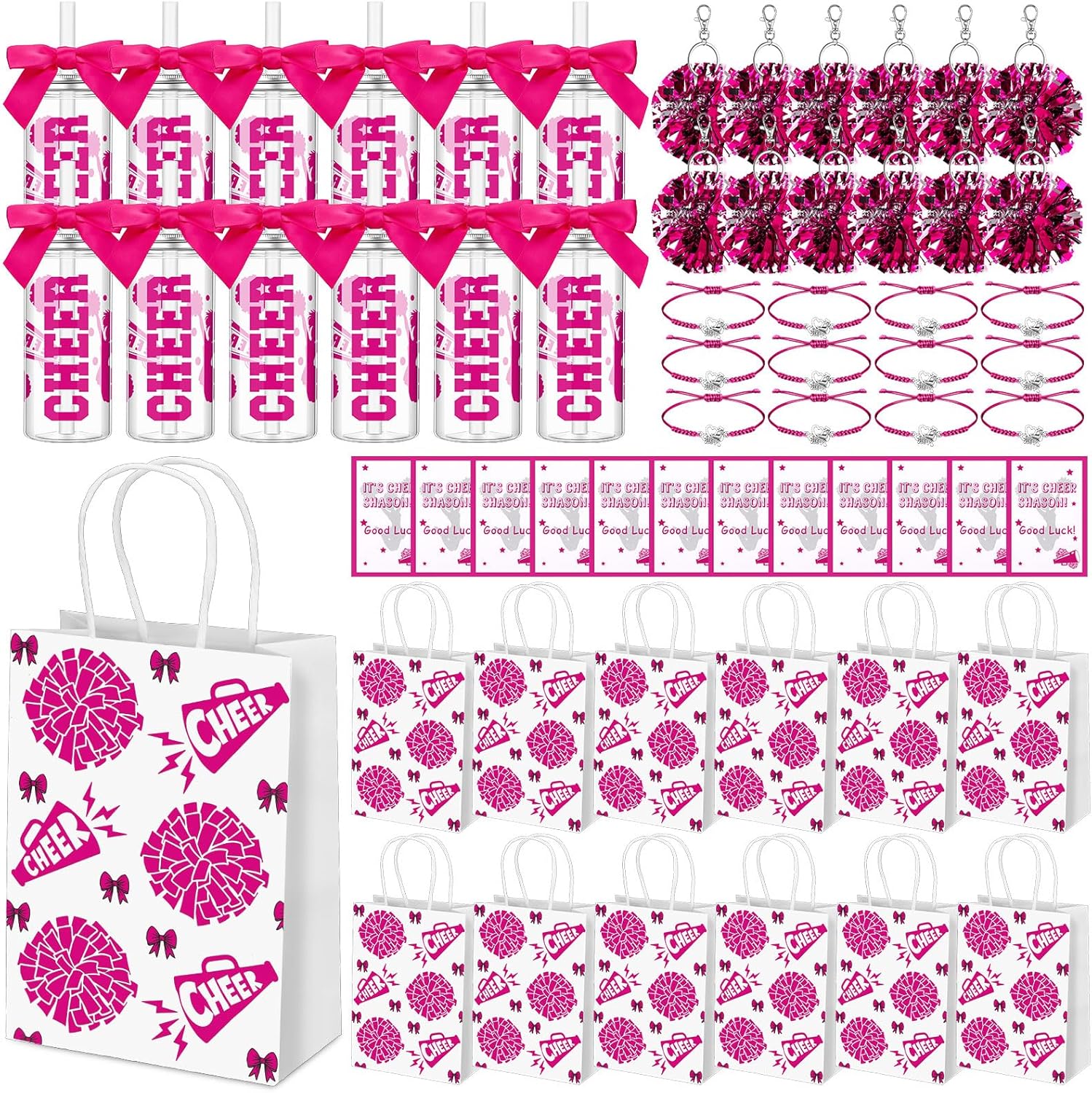 | Included Components | 12 X Cheer Pom Pom Keychain, 12 X Cheer Tumbler Cups, 12 X Cheer gift bag, 12 X Cheer gift card, 12 X cheer bracelets |