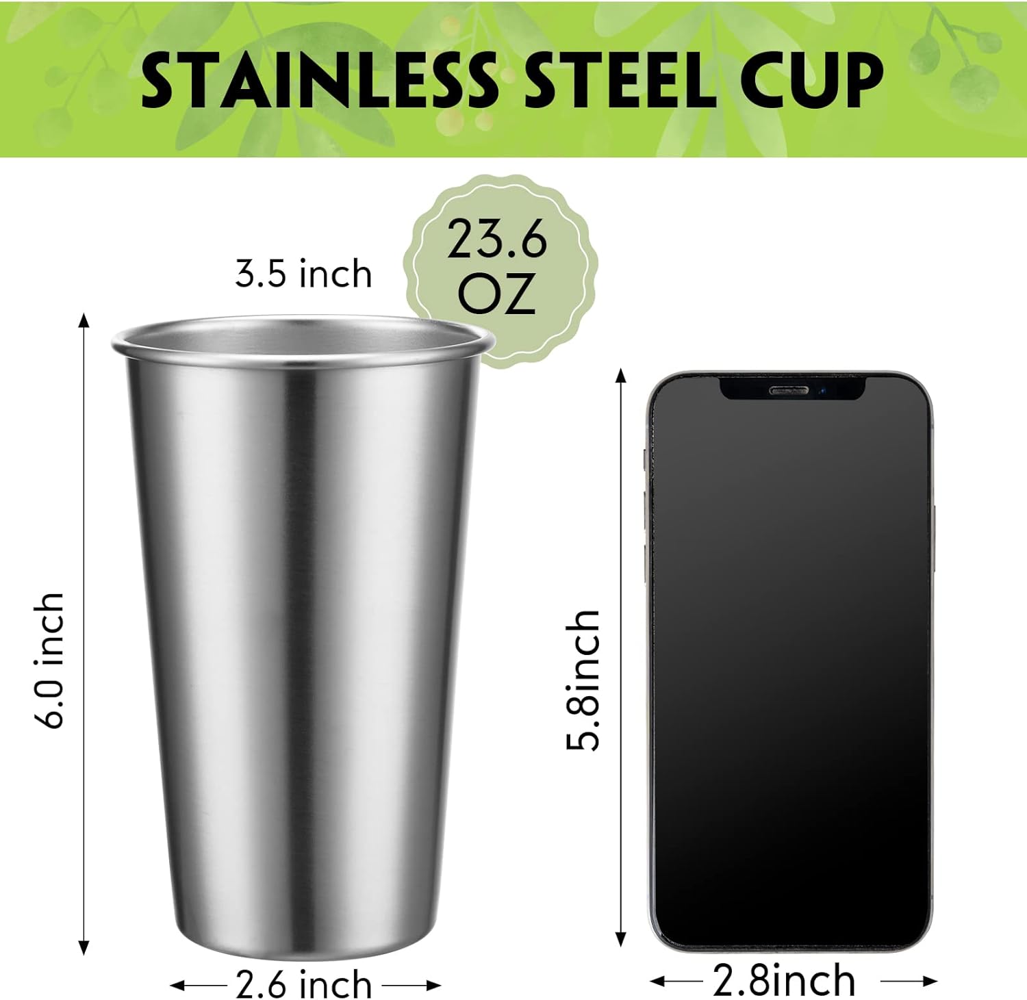 Features: Nice gift: These stainless steel stackable tumbler cups are suitable for sending to your friends, family, colleagues, classmates, relatives, neighbours and others you like and care as gifts to show your feeling and make them happy. Good helper: Our metal camping cups bulk are portable for you to carry around, so you can take them when camping, backpacking, traveling, outdoor events, hiking, climbing and more outdoor activities. Specifications: Material: 304 stainless steel Color: silver Capacity: 24 oz / 700 ml Package includes: 20 x Stainless steel cups Warm notes: Manual measurement, please allow slight errors on size. The color may exist slight difference due to different screen displays.