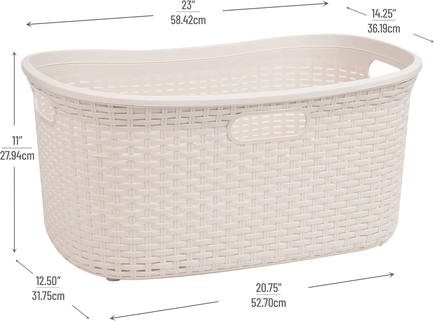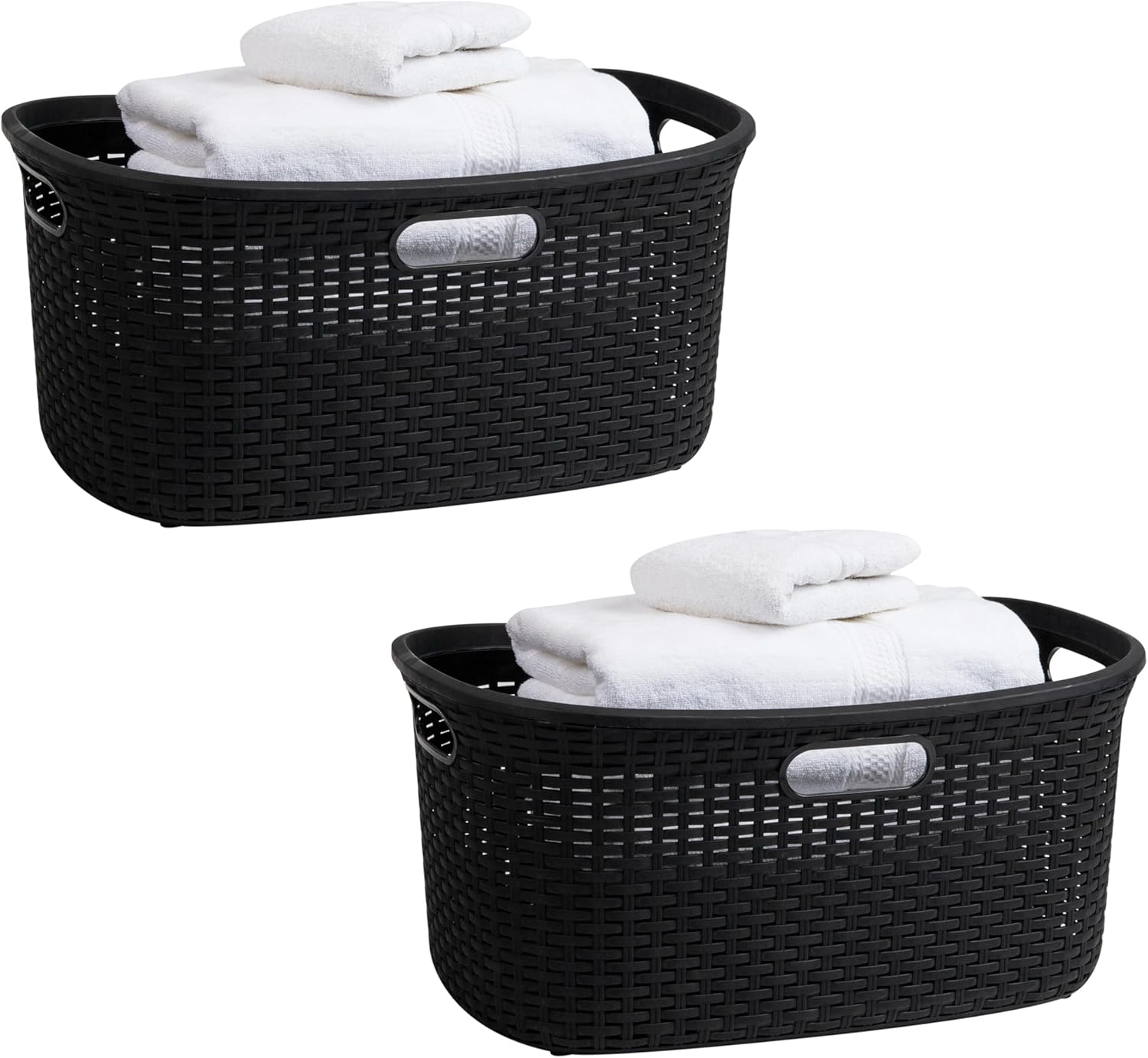 Mind Reader Slim Tapered Laundry Baskets – Set of 2This set of two slim laundry baskets is designed to provide practical, space-conscious storage for everyday laundry needs. With a narrow profile and open-top design, these baskets fit easily into bathrooms, closets, bedrooms, and laundry rooms while keeping clothing and linens neatly contained until laundry day.Each basket offers a 40-liter capacity and is constructed for lightweight, everyday use. Built-in handles make it easy to lift, reposition, and carry baskets short distances when sorting or transporting light to moderate loads of laundry.The baskets feature a tapered shape that helps reduce floor space usage while maintaining a wide top opening for easy loading. The top opening measures 23 inches long by 14.25 inches wide, while the base is narrower to sit more compactly on the floor.Ideal for apartments, dorm rooms, shared spaces, or households looking for simple laundry organization, this set of two baskets offers a functional solution without taking up unnecessary space.