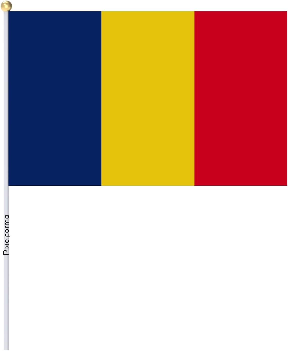 VARIOUS SIZES: Choose from our three sizes available to find the one that best suits your use. We offer flags of 14x21cm, 20x30cm and 30x45cm, offering a range of options to suit your preferences. Polyester Material The flags are made of high quality polyester, which makes them durable, weather resistant and suitable for outdoor use. The polyester also ensures a sharp and vibrant colour print. SUITABLE QUANTITY: We offer two quantity options to meet your specific needs. Choose between a pack of 100 pieces or a pack of 50 pieces, depending on the event or intended use. Versatility of use: Whether to show your support at a sporting event, to decorate a party, to mark a special occasion or simply to display your patriotism, these mini flags are versatile and can be used in a variety of ways. Ease of display: Each flag is equipped with a sturdy plastic pole that makes it easy to hold them and place them wherever you want. They are lightweight and easy to handle. Bring a splash of colour and festive spirit with our set of mini polyester flags. Order now and show your pride in a compact and stylish way! Flag of Chad