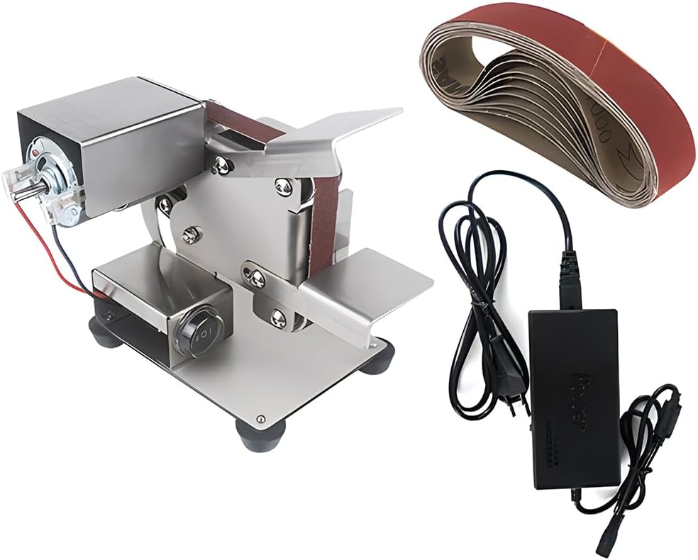 Specifications: Material: stainless steel Voltage: AC 110-240V Rated voltage: DC 12-24V Rotating speed: 4000-9000RPM Speed control mode: 7 gears adjustable Type 15 belt sander belt size: 15 * 330mm / 0.6 * 13.0in (60/80/120/180/240/320/400/600/800/1000 mesh) Type 25 belt sander belt size: 25 * 330mm / 1.0 * 13.0in (60/80/120/180/240/320/400/600/800/1000 mesh) Machine size: 150 * 143 * 140mm / 5.9 * 5.6 * 5.5in Type 15 belt sander weight: 1059g / 2.3lb Type 25 belt sander weight: 1094g / 2.4lb Package size: 202 * 190 * 160mm / 8.0 * 7.5 * 6.3in