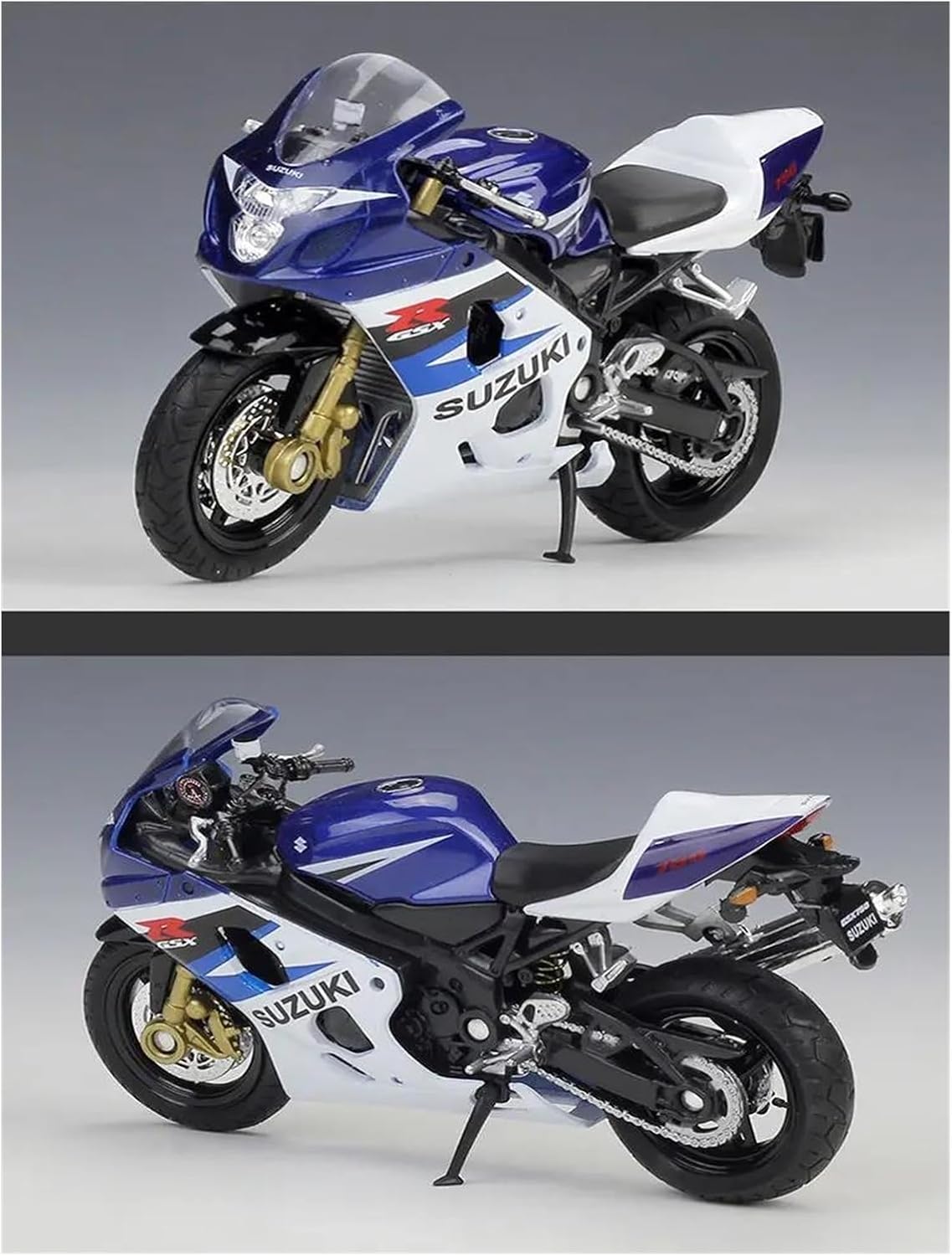 DescriptionNote: Only the fuel tank is made of metal, all others are made of ABS.Name: 1:18 SUZUKI GSX-R750Dimensions: approx. 11.7cmX6.7cmX6.7cmX6.7cmX6.7cmcm Scale: 1:18Material: Die-cast metal Die-cast metal and ABS partsColor: BlueFunction: ●Front wheel and handlebar can be swung left and right. Front wheel and handlebar swivel from side to sideRemovable kickstandSpring loaded rear suspensionFree-rolling wheelsName: simulation miniature alloy motorcycle model toys, sports racing motorcycle model super off-road cruiser motorcycle vintage iron motorcycle model limited edition static commemorative collection motorcycle model seriesMaterial: alloy + rubber tires + ABS1:Exquisite workmanship2: sturdy and durable3: also far motorcycle of the true proportion of the detailsFunctions: front and rear wheels with shock absorbers/head linkage left and right steering/size kickstand can be put away and put down/press to start the lightsUsage: Parent-child interaction Home office decoration Collection Memorial Christmas Birthday Halloween Thanksgiving Any holiday giftRecommended age:4-6 7-12 18 years old and aboveTips for use:1. Keep away from fire sourceTranslated with DeepL.com (free version)