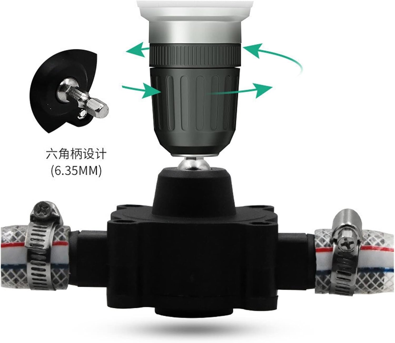 1. Tool-free disassembly and cleaning: Flexible structural design, easy to disassemble and clean without any tools.2. Easy to carry and use: This pump is small in size and equipped with a handle, which is very convenient to carry, so it can be used in small spaces. Suitable for swimming pools, ponds, gardens, basements, aquariums, irrigation and other places.Specification:Color: BlackPump Shank: Hex ShankFlow Rate: 1.2(m/h)Item size: 125 * 70 * 62mm / 4.9 * 2.8 * 2.5inchPackage included:1 X Water Pump1 X Installation ToolsNote:Conversion:1inch=2.54cm, 1cm=0.393inchesFeatures:1.Exquisite workmanship, small size, light weight.Easy to install and simple to use. No batteries needed.2.High flow, the flow Rate is 1800 (m/h),stable performance and high efficiency.3.Fit all drill chucks, you can get a pump with a electric drill.4.Exquisite workmanship.5.Compact design, convenient to carry and storage.