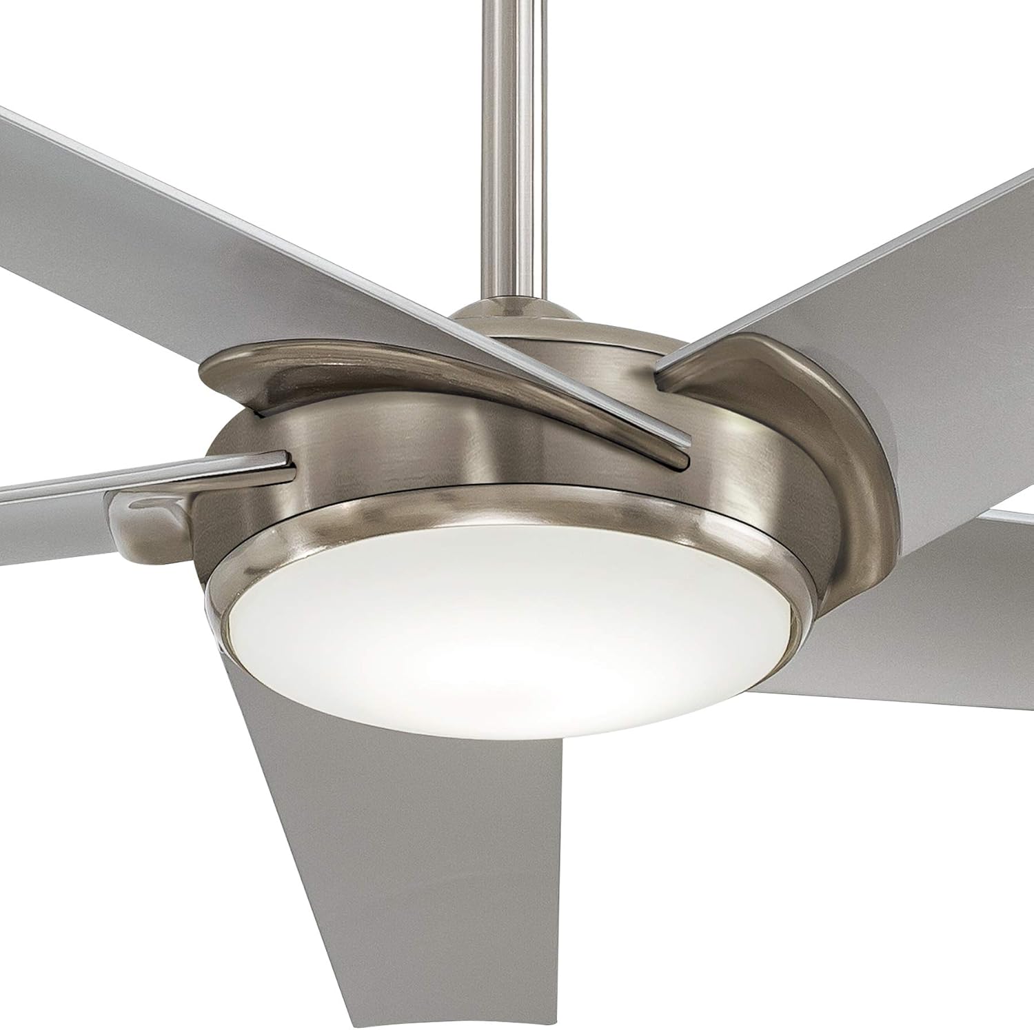 The Minka Aire Raptor LED 60" Ceiling Fan in Brushed Nickel Finish with Brushed Nickel Blades (Integrated 16 Watt LED Light Included) combines the best of both lighting and fan technology with its integrated LED light kit and high-powered, energy-efficient DC motor. This clean, sleek and contemporary ceiling fan has 5 blades that produce a cool, refreshing air current with an integrated LED light source.