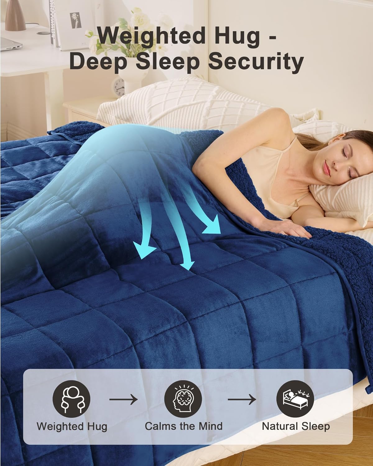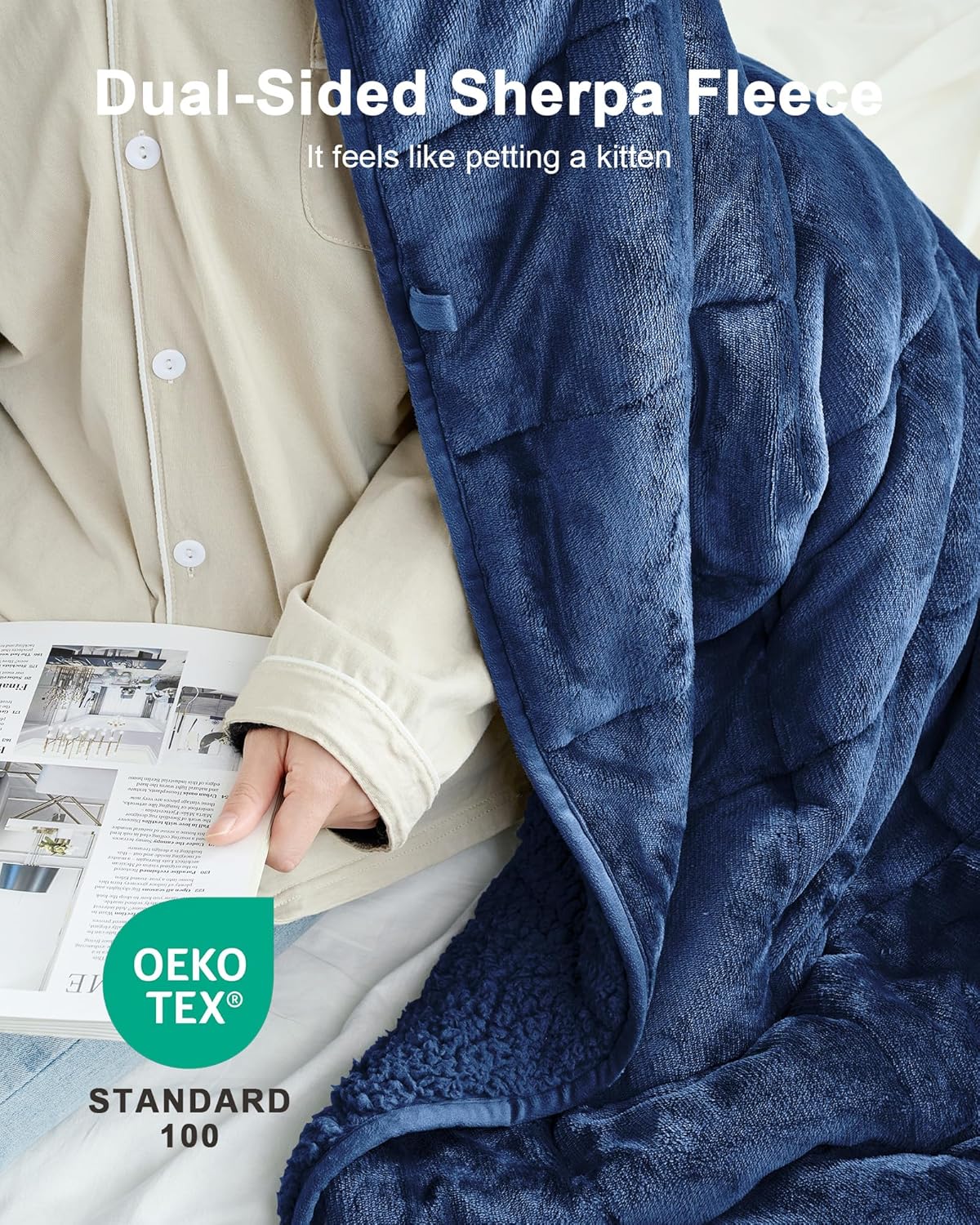 Discover UINIU 7-Layer Bead Lock Sherpa Fleece Weighted Blanket for adults, meticulously designed for those seeking chilly nights. Featuring innovative 7-layer bead lock technology, the fine microbeads are evenly distributed to eliminate any lumps or noise, ensuring balanced weight throughout. The dual-sided Sherpa fleece fabric is ultra-soft, providing a cloud-like touch perfect for individuals with sleep challenges.* The weighted design offers a gentle, hugging pressure that supports relaxation, helping you fall asleep faster and enjoy deeper rest.* Ideal for nighttime slumber or daytime naps, this weighted throw blanket delivers lasting security and comfort. Easy to care for and commercial machine washable, it's the perfect addition to your bedroom. Say goodbye to restless nights and embrace the warmth of a loving hug-start your journey to peaceful sleep today!