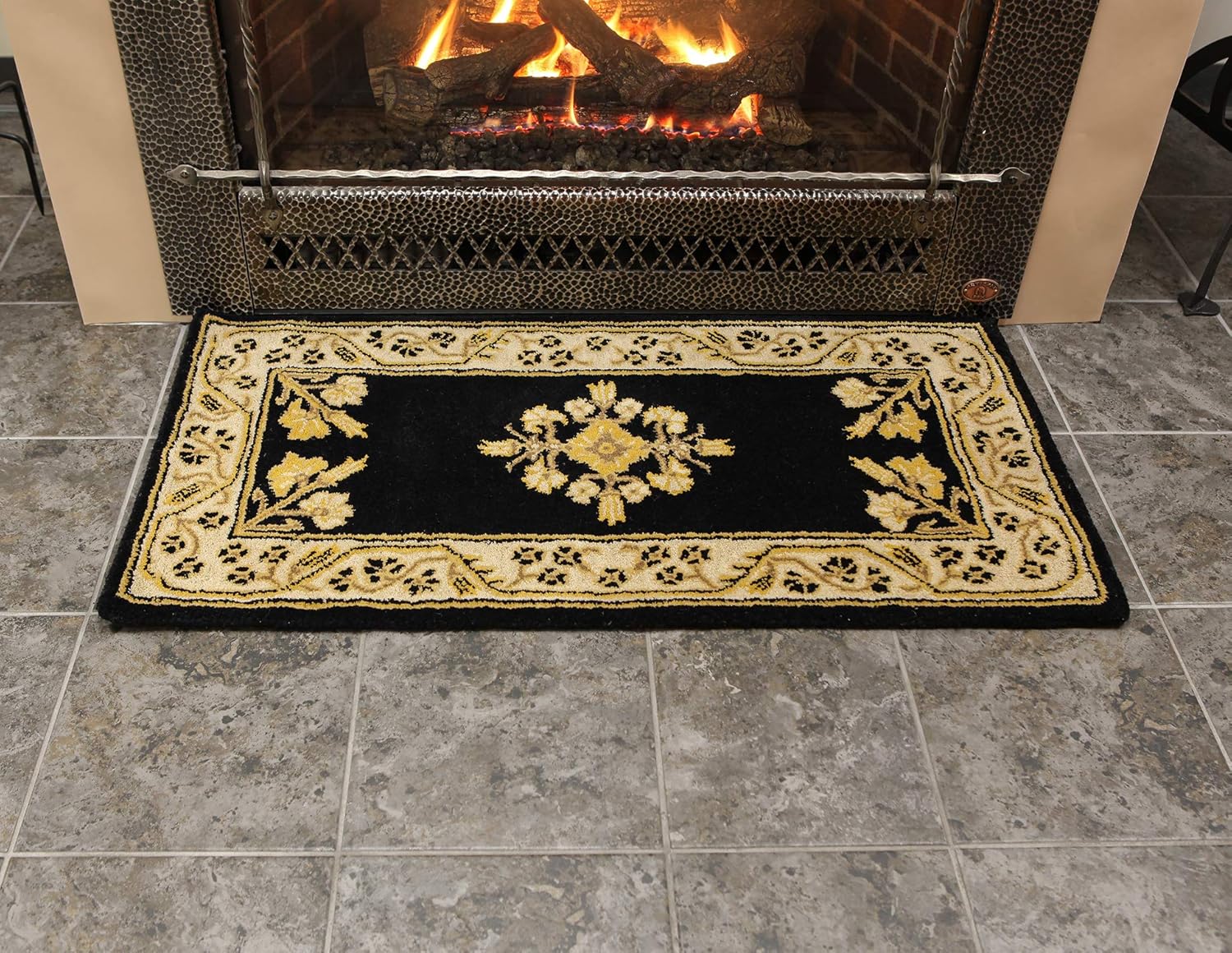 Achla created this Jardin or garden design, inspired by traditional Turkish rugs. Jardin rugs feature medallions of tulips and carnations, and borders of stylized carnations. They are available in rich Vermilion, Cocoa, and Noir, an elegant combination of black and beige. Hearth rugs protect your floor and will add beauty and warmth to your fireplace. They can also be used as door mats or as occasional rugs throughout your house. (For indoor use only).All our hearth rugs are woven from the highest quality 100-Percent virgin wool and dyed in rich saturated colors. They are fire resistant and meet federal requirements for surface flammability of small carpets (Part 1631 - FF2-70). Warning: your pets will probably make a bee-line for these rugs so they can bask in the warmth of the fire!