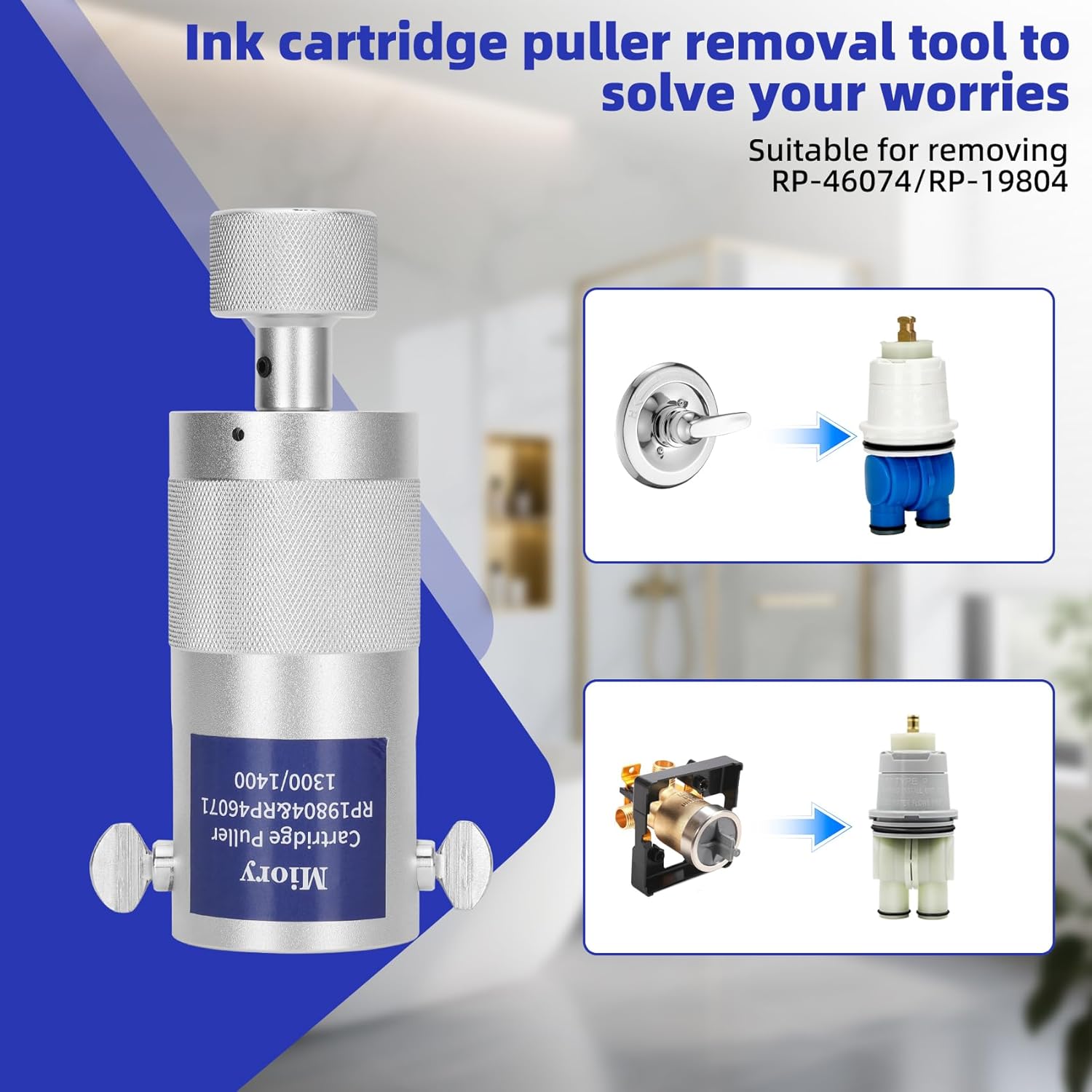 Miory Professional Cartridge Removal Tool Compatible with Delta 1300 & 1400 Cartridge, Cartridge Puller Removal Tool allows easy removal of the RP19804 RP46074 cartridge assembly
