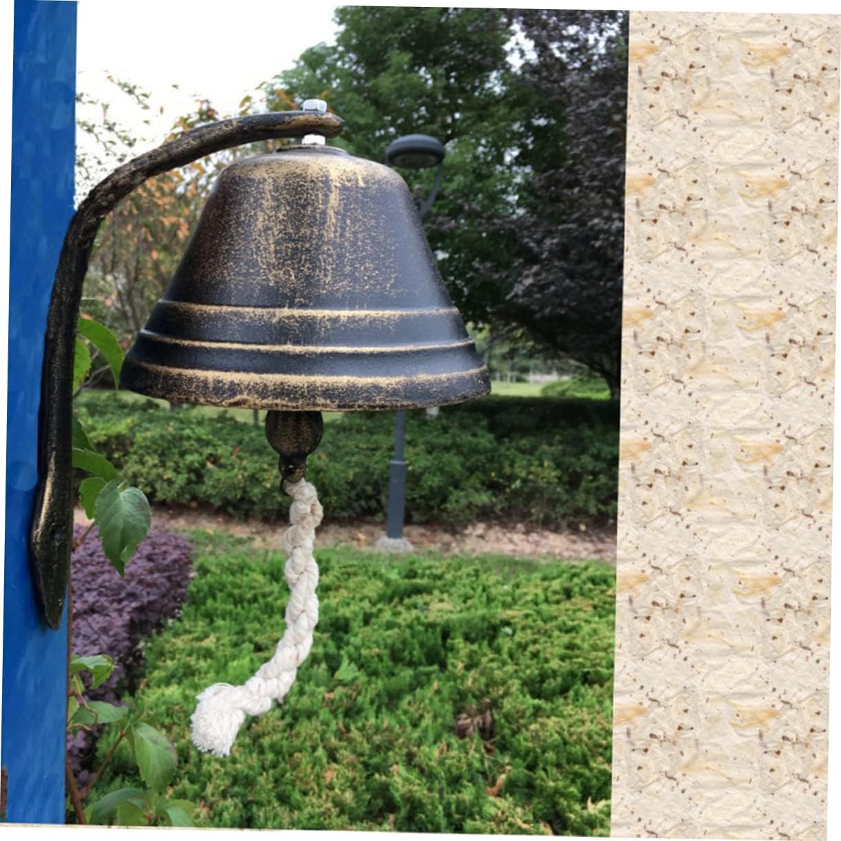 Package Include 1 x doorbell Features - Material: Iron Doorbell. - Size: 14x12x25cm/5.5x4.7x9.8 inch. - The doorbell sound is very loud, suitable for a variety of occasions. Schools, classrooms, coffee shops, etc Cast Iron Doorbell. - Made of material, it is durable and use. You can safe to use it Retro Doorbell. - This product can be given as a great present for your friends and families. They will be very happy Door Decoration. - There are small holes in the handle, which can be hung outside the door, or outside the store Coffee Shop Doorbell. - There is a rope under the doorbell to shake it, so that the doorbell makes a clear sound, letting people know that someone is coming in. - BrownGoods InformationDoor Decoration They will be very happy. Doorbell This product can be given as a great present for your friends and families.Coffee Shop Doorbell It can be used as a doorbell, dinner bell, or a simple decorative bell.Cast Iron Doorbell for as a present to your friends and more.Retro Doorbell for hanging in the coffee shop, door. This is a doorbell which is made of iron material, designed with retro style, makes this ornament more chic and